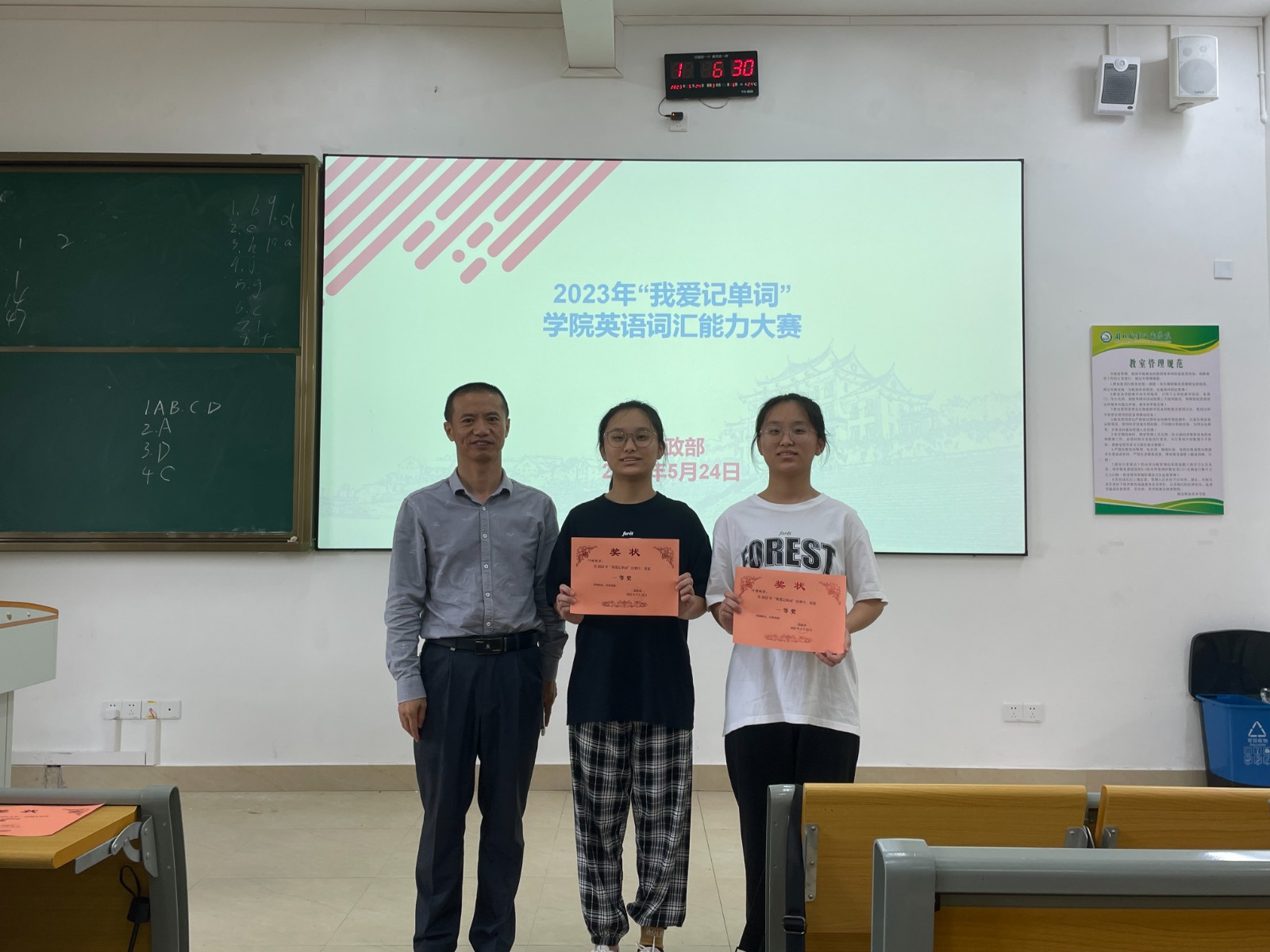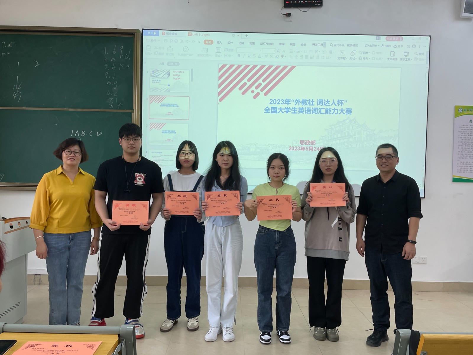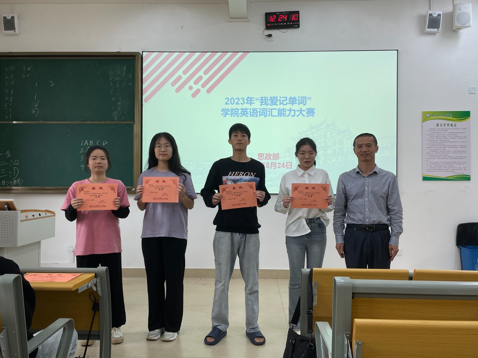 会上,邱海松部长👩🏻‍🍳、教科办主任郑桂芳及方凯教师分别发言,勉励同学们再接再厉,继续努力学习,力争获得佳绩。随后,英语教研室主任方凯老师宣读了2023年“外教社.词达人杯”全国大学生英语词汇能力大赛省赛、校赛以及今年英语社团举办的“我爱记单词”校赛获奖名单,最后全体与会教师分别给获奖的同学颁奖合影留念。