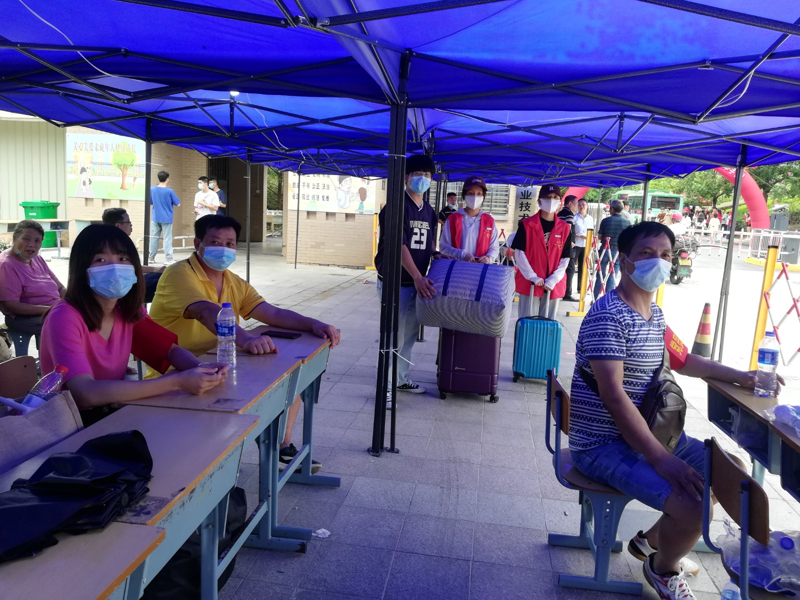 迎新当天,党员们热情的接待新生,为新同学提供热情周到的服务,主动帮助新生拿行李➕,结合疫情防控有关要求,党员、教师们为新生量测体温、核验健康码、行程码等,尽力为新生排忧解难,让新生一入校就感受到家的温暖🧑🚀。