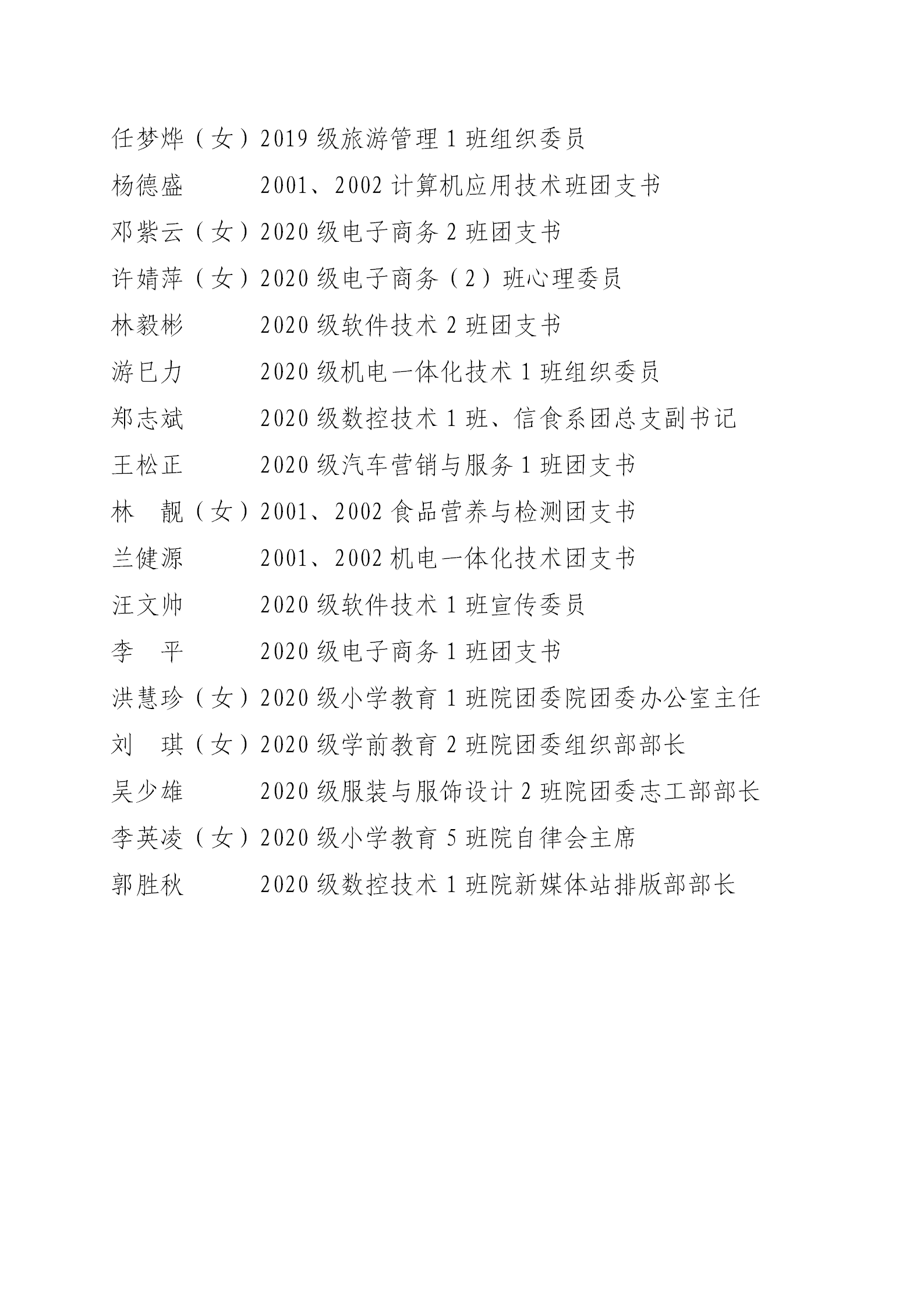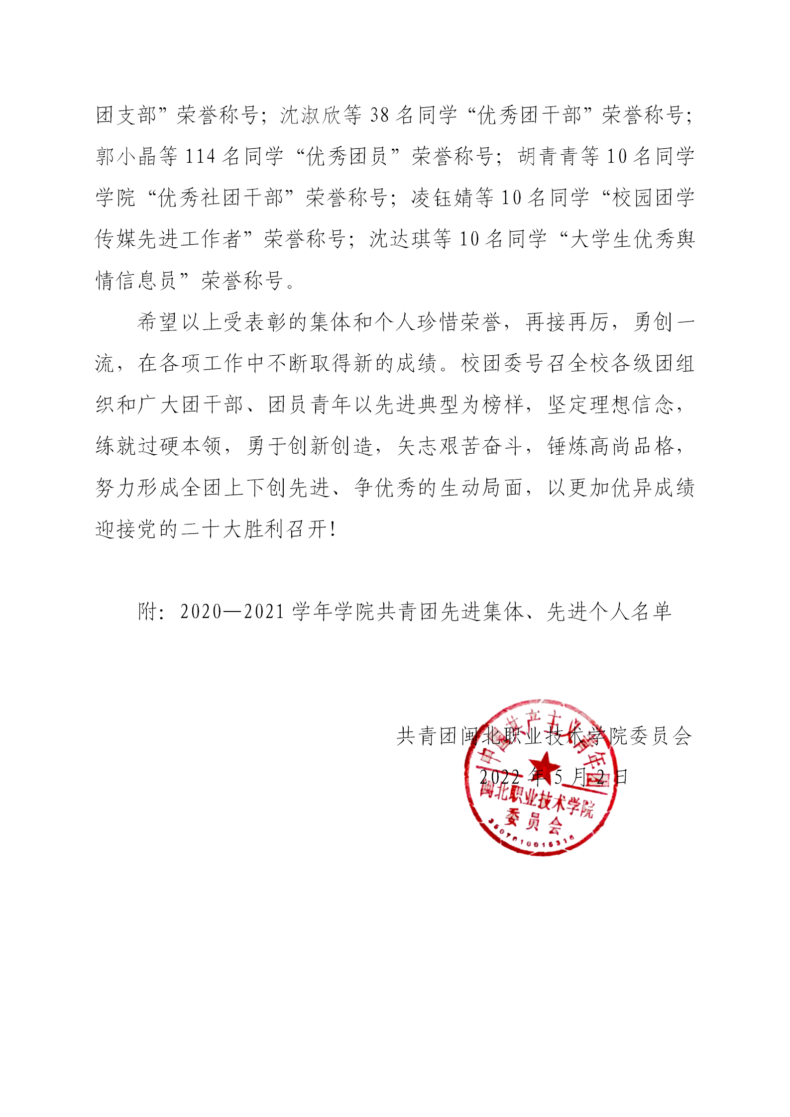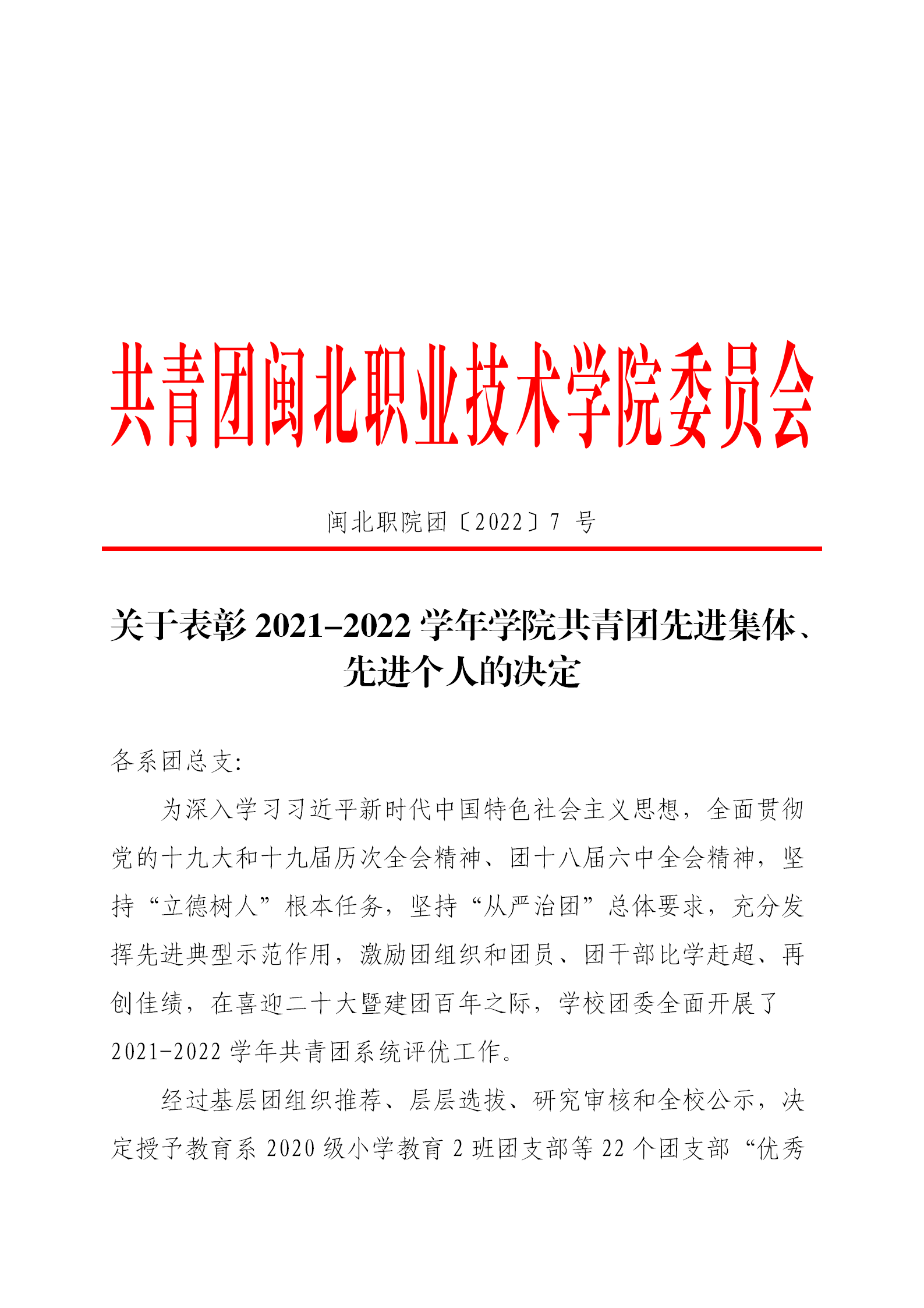 关于表彰2021-2022学年学院共青团先进集体✴️、先进个人的决定(闽北职院团〔2022〕7号)