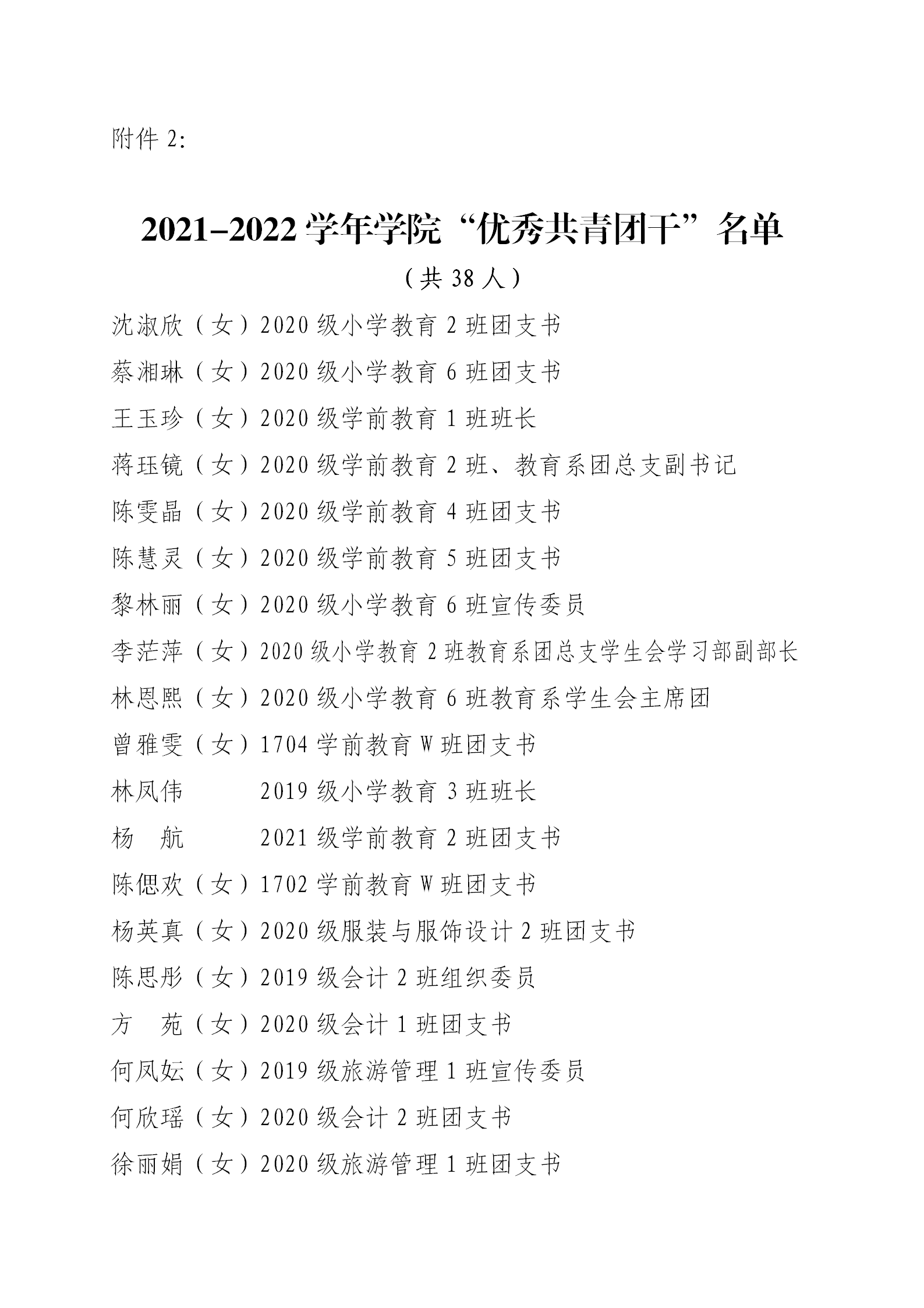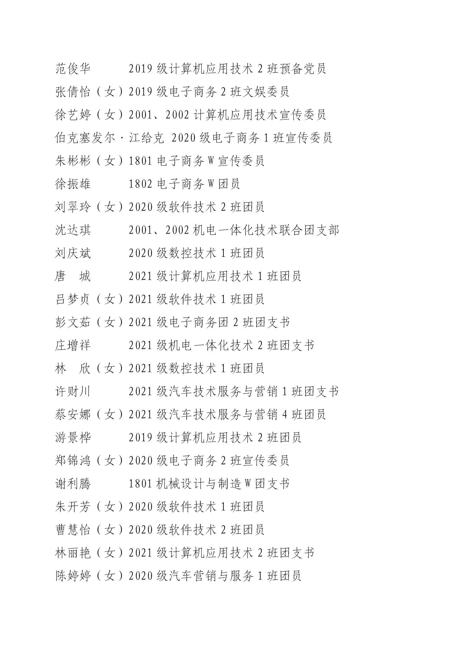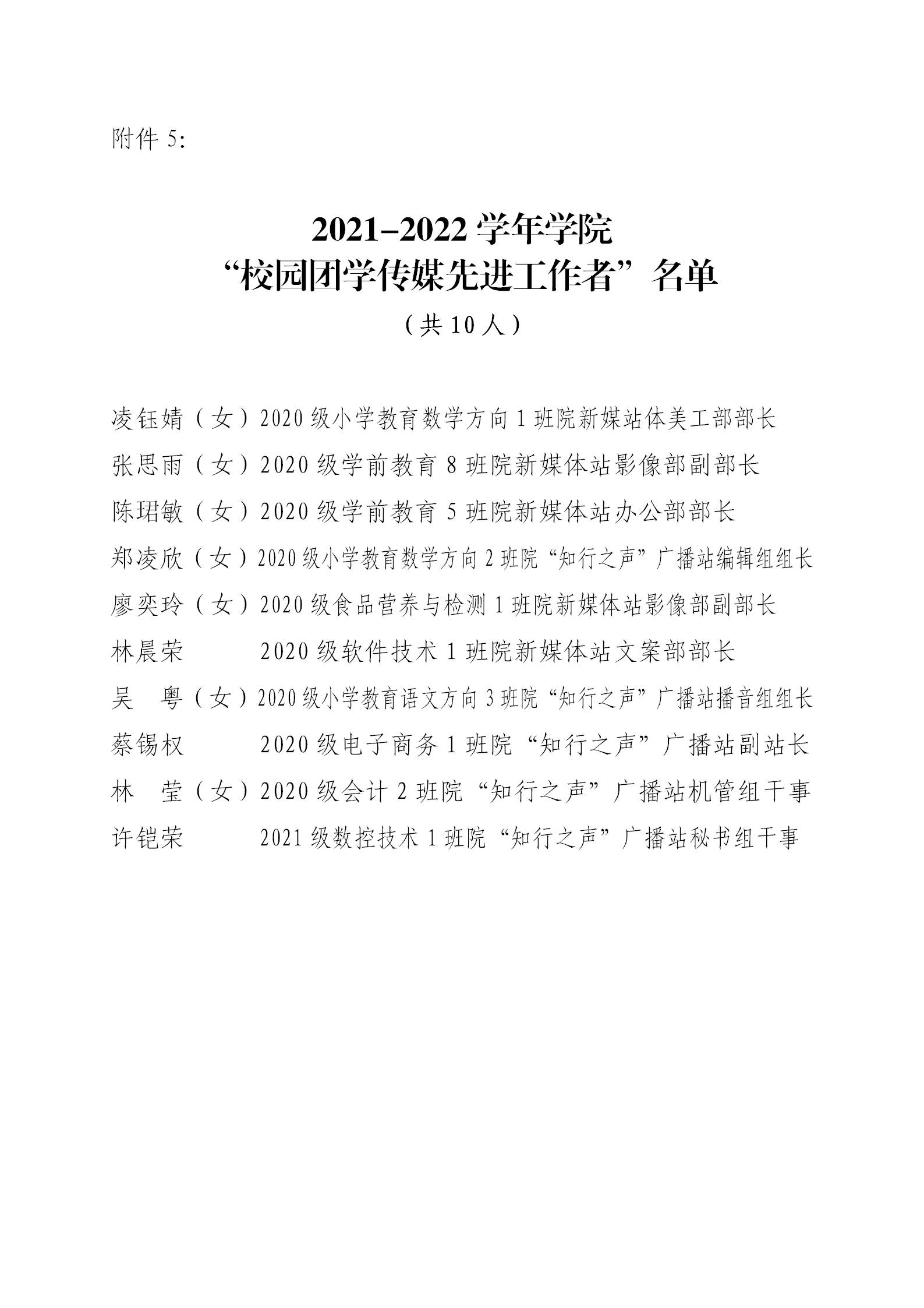 关于表彰2021-2022学年学院共青团先进集体✴️、先进个人的决定(闽北职院团〔2022〕7号)