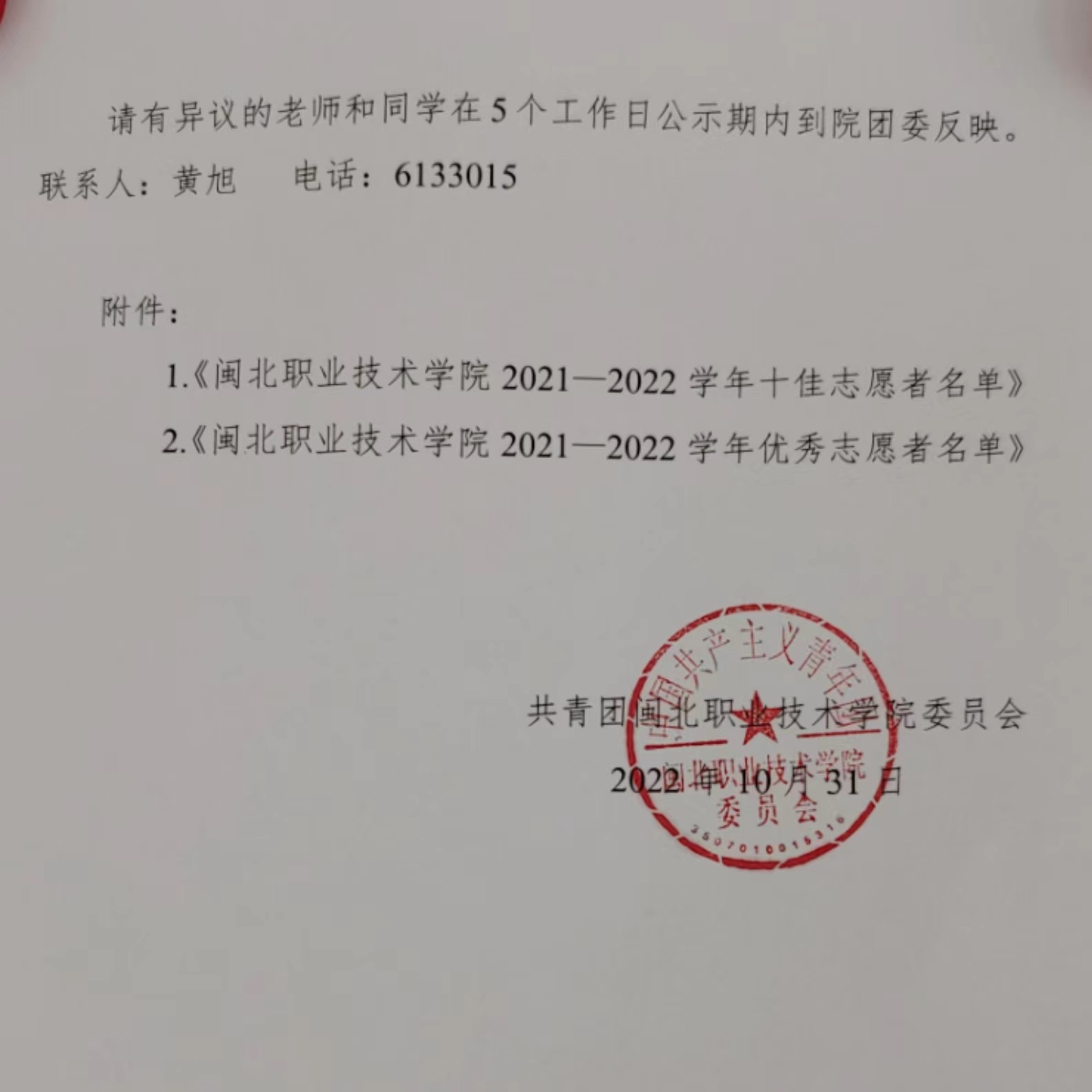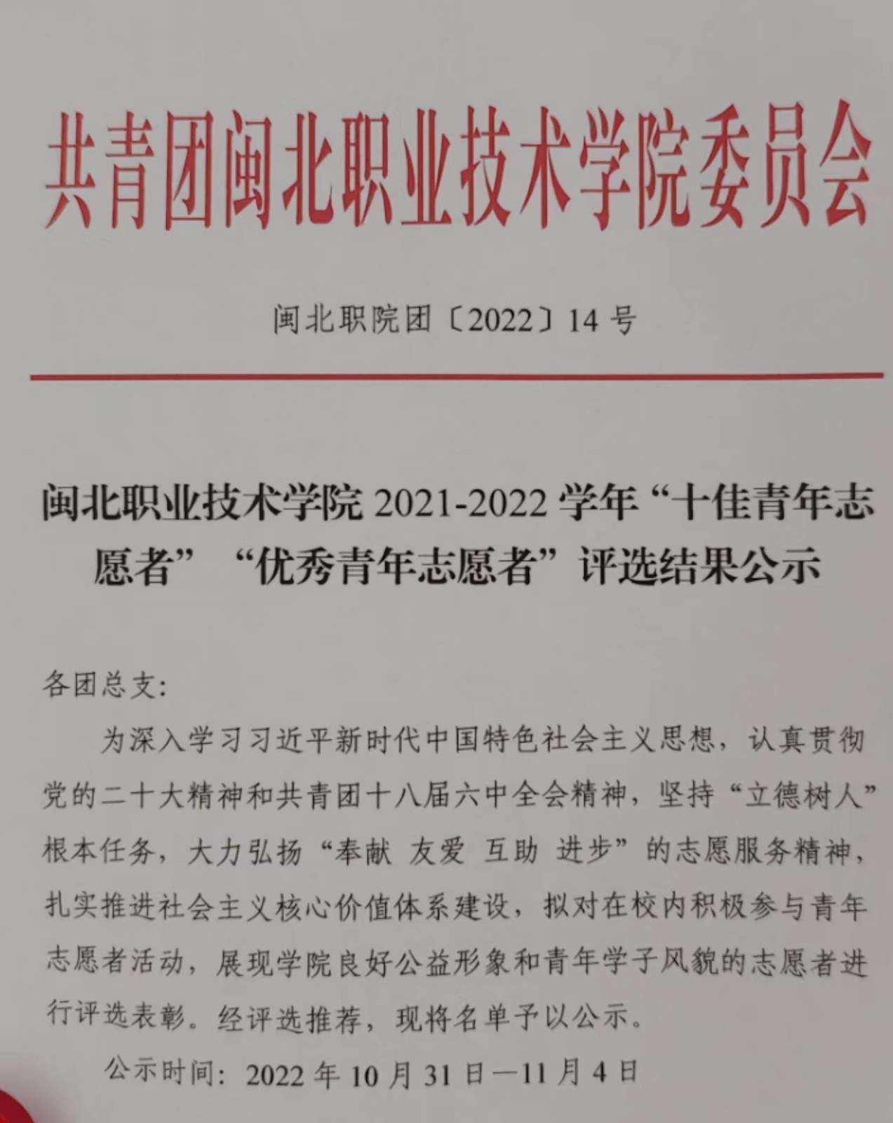 关于表彰2021-2022学年学院共青团先进集体🧑🏽🦳、先进个人的决定(闽北职院团〔2022〕7号)