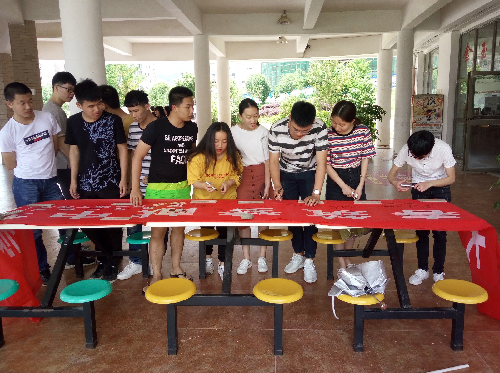 本次系列主题活动主要有:1、组织志愿者开展“发扬志愿者精神,爱护环境”的九峰山保洁活动🧑🧒;2、各班团支部组织召开“学习党的十九大会议精神”主题班会;3、利用互联网新媒体QQ、微信、微博、贴吧等平台👩🏼✈️,开展弘扬“五四”精神爱国主义教育等内容的宣传;4、开展“学思践悟十九大,青春筑梦献中华”横幅签名活动。