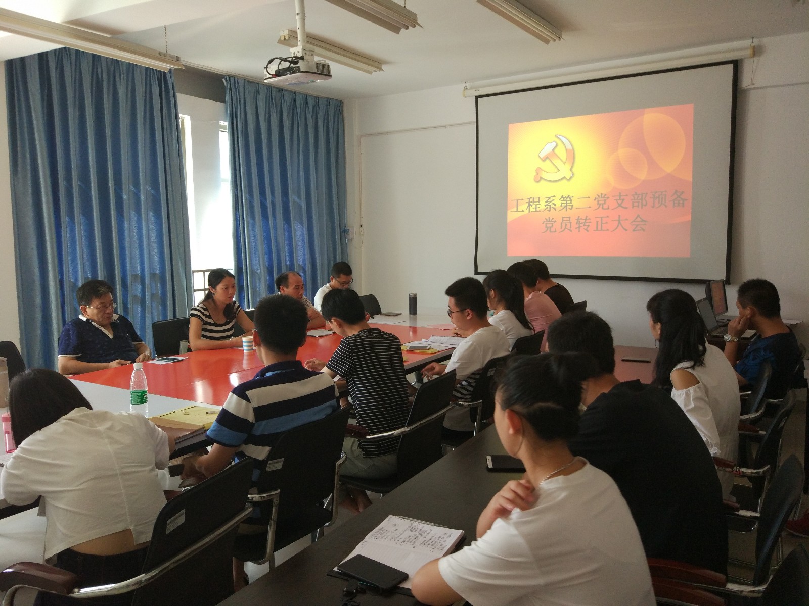 2018年7月4日✊,工程系第二党支部在行政楼407室召开预备党员转正大会。参加此次会议的有工程系第二支部正式党员、预备党员,会议由支部书记胡建辉同志主持。
