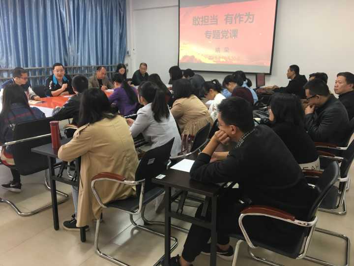 10月30日上午,院纪委书记姚荣同志为我系广大教职员工上了一堂题为《敢担当,有作为》的专题党课。