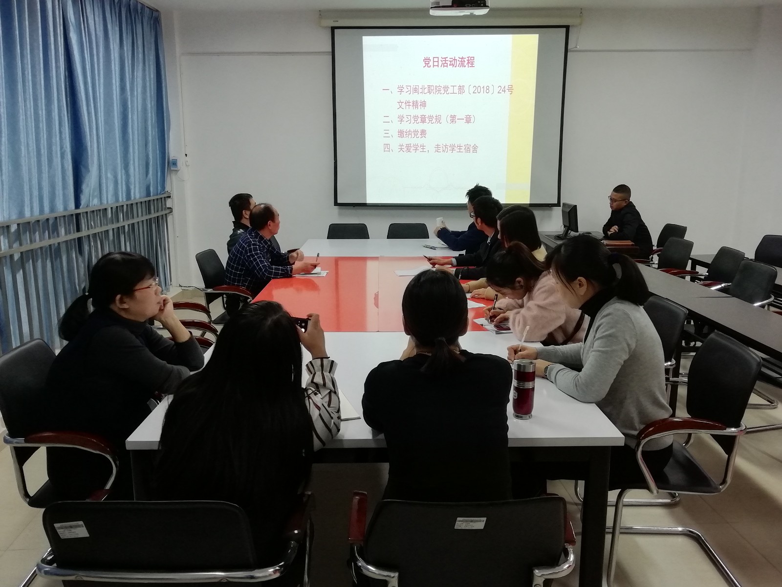 2018年11月28日下午🧙🏿‍♂️,信息系和食品系第二党支部召开11月主题党日活动👨‍🦳。本月党日活动主题是学习培养社会主义建设者和接班人🙇🏻。活动由支部书记胡建辉同志主持。