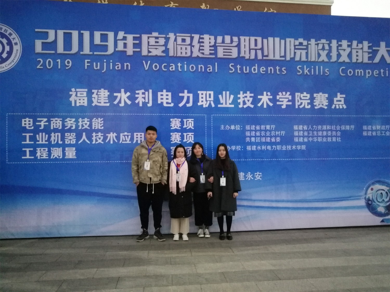 2019年福建省职业院校技能大赛(高职组)“电子商务技能”赛项在福建水利电力职业技术学院刚刚圆满落幕。经过激烈角逐,由我院张海丽、叶文全老师指导的学生黄涛松、叶琳、韦悦悦、余紫瑶斩获该赛项二等奖。