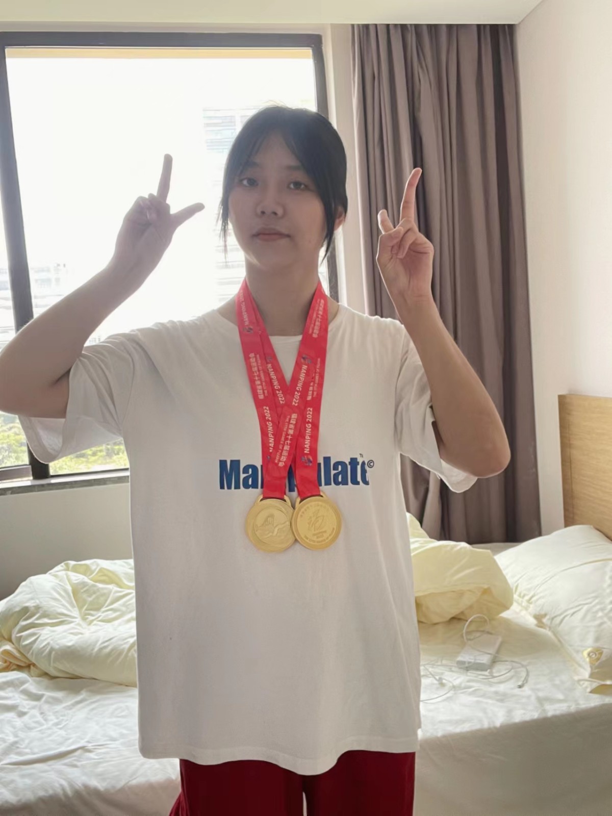 在经过紧张刺激的角逐,吴青霞同学于7月29日上午在女子丙组50米仰泳决赛中勇夺金牌🤽,并在30日上午,在女子丙组50米蝶泳决赛中再传喜讯🌓,以32秒24的优异成绩斩获蝶泳冠军⌨️。这也是其个人在本届省运会中,获得的第二枚金牌。