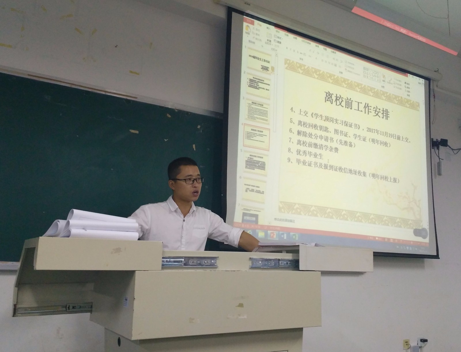 2017年11月14日晚,我系在教学楼205教室召开2018届全体毕业生工作会议🧾。会议就毕业生后续行程安排、档案填写🤽🏻♀️😄、就业协议书签订、实习单位选报▶️、党团组织关系转移等进行了详细的讲解说明🖐,并对各项任务提出具体要求🕛。本次会议的召开🧐,使我系2018届毕业生进一步明确了顶岗实习期间的各项任务及意义⏬🛡,为顺利完成顶岗实习任务做好充足准备✍🏿。