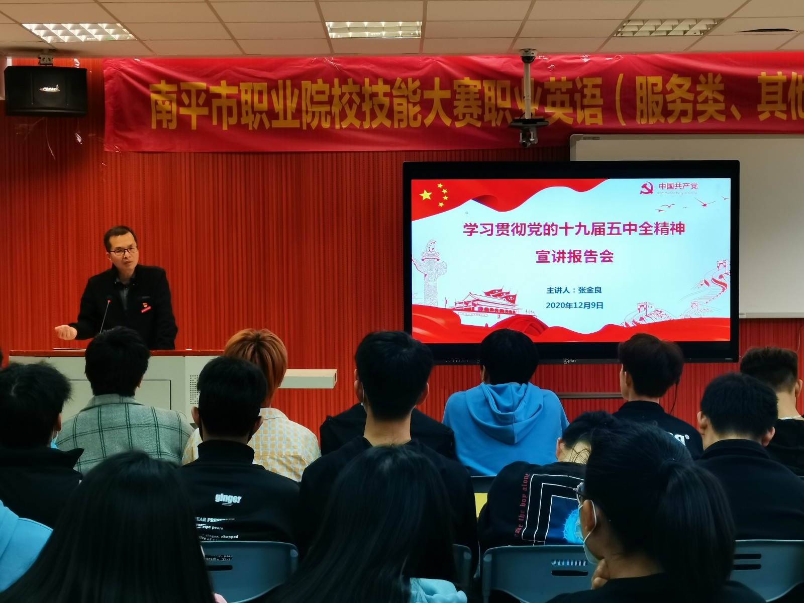 12月9日下午,信息系和食品系联合党总支召开学习贯彻党的十九届五中全会精神第一场宣讲报告会,系主任张金良为大一学生代表进行了宣讲。