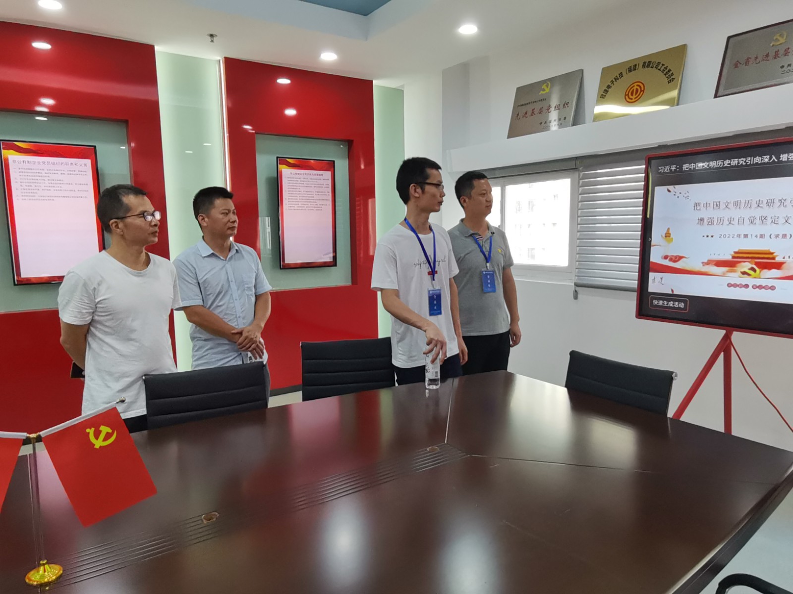 7月27日,一支部组织在福建技术师范学院参加教学能力提升培训的支部党员,参观冠捷集团党支部建设,通过开展党建学习交流活动共提升。通过本次的学习交流活动,党员同志更加深刻的感受到了科技强国的魅力与重要性,和身为党员教师在教书育人工作上的责任与担当,不忘初心、牢记使命。