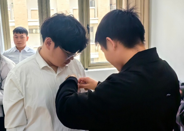 宣誓后🙋🏻‍♀️,支部正式党员为郑祥瑀等14名预备党员亲自授予党徽。预备党员代表郑祥瑀同志表示,身佩党徽必将不负众望,会继续坚定理想信念🙅🏽,不懈向理想奋斗,为共产主义事业奋斗终身。