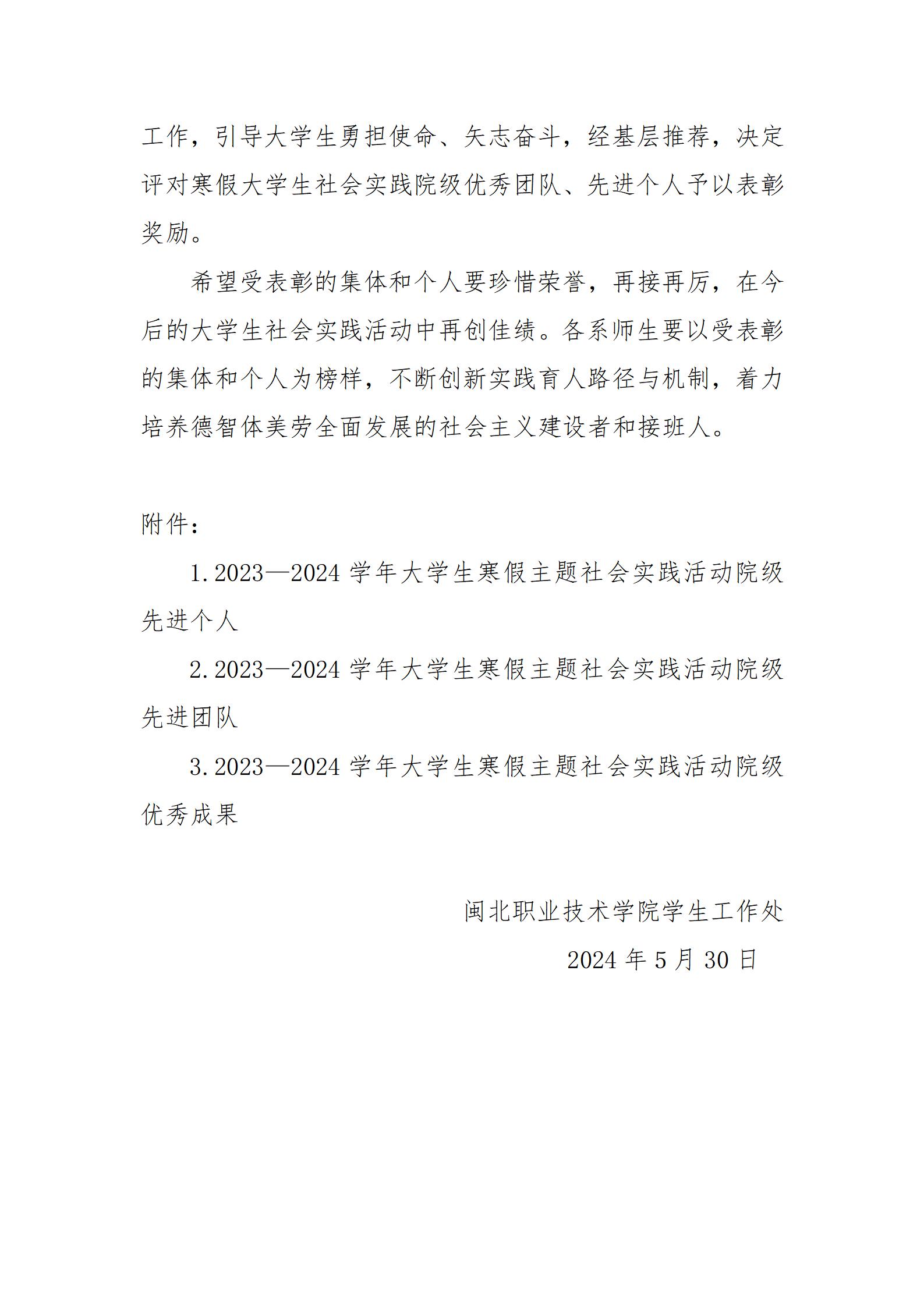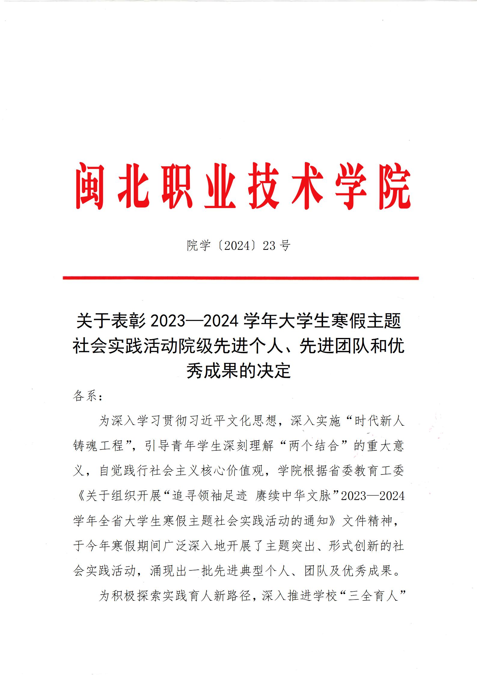 关于表彰2023—2024学年大学生寒假主题社会实践活动院级先进个人👳🏼♀️、先进团队和优秀成果的决定