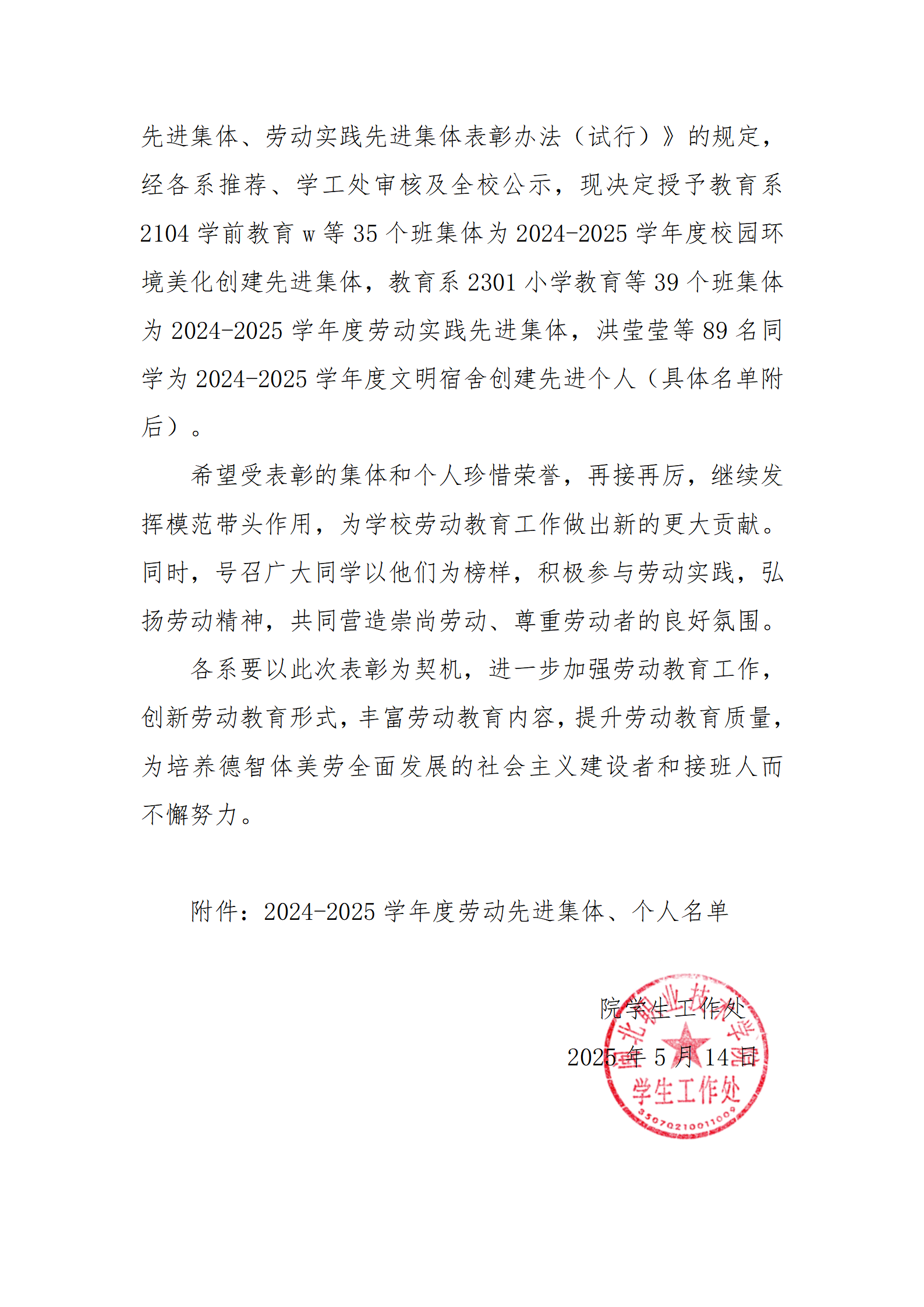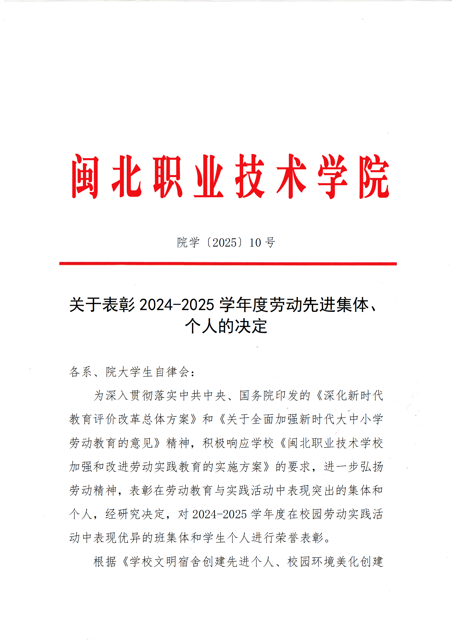 关于表彰2024-2025学年度劳动先进集体🙍♂️、个人的决定