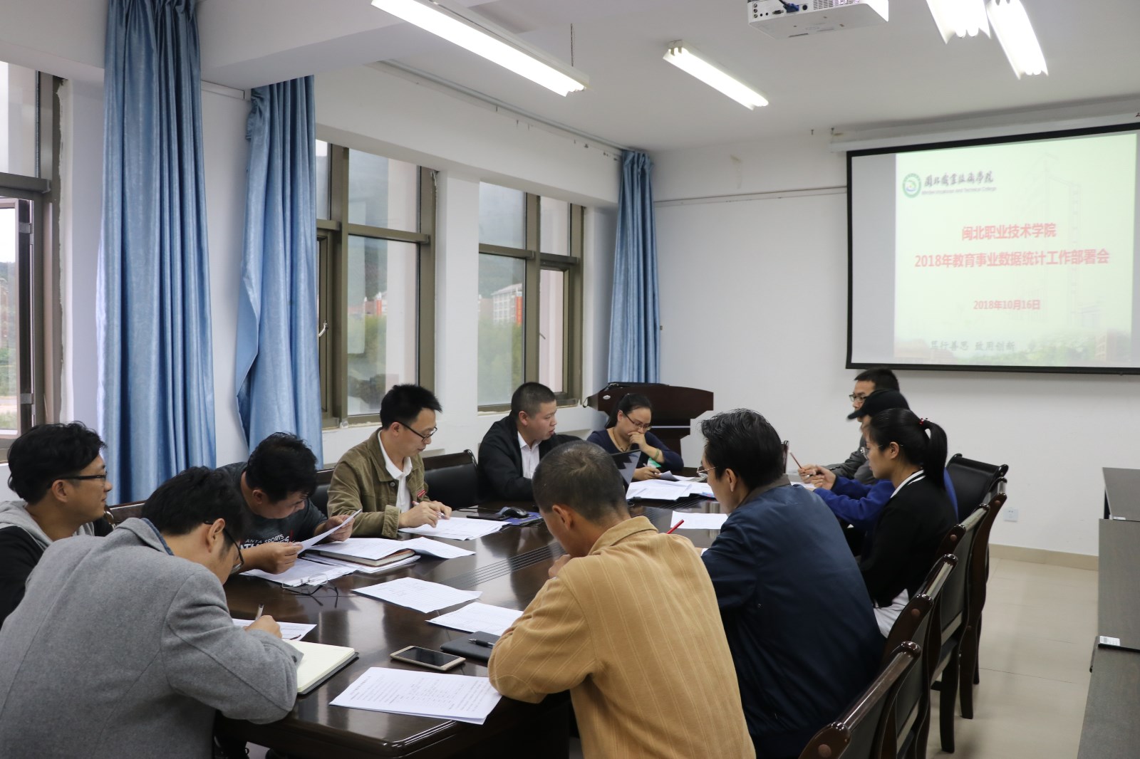 10月16日下午4:20,学院于五楼会议室召开2018年教育事业数据统计工作会议🍄,党委工作部、办公室、教务处🍀、人事处👨🏻🏭、学生工作处、思政部🤸🏼、后勤管理处🆒、图书馆👩❤️💋👨、招生与继续教育处等部门的相关人员参加会议。