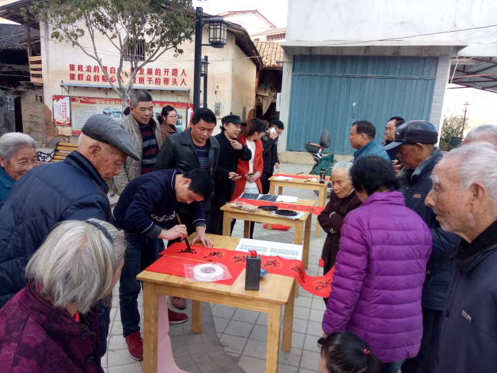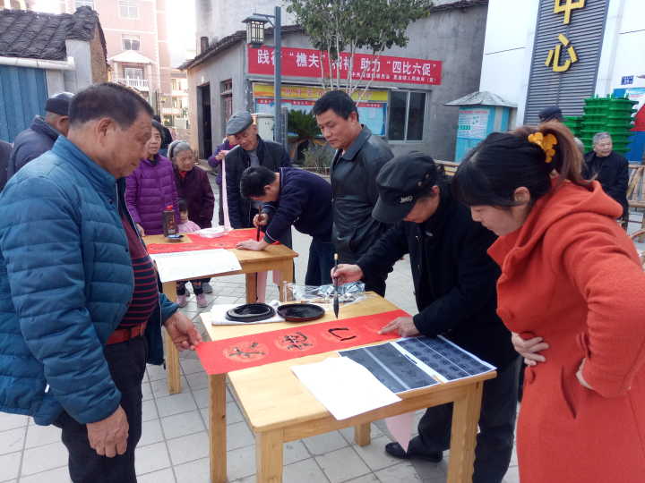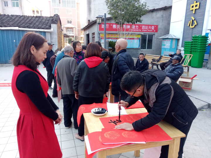 2018年1月18日下午,艺术与传播系党总支组织我院书法爱好者到夏道镇小鸠村开展义务送春联活动。本次活动共为当地村民义务书写春联近百付,受到村民的热烈欢迎和感谢。我系党总支将充分发挥自身文化艺术资源优势,开展文化下乡活动,为社会主义新农村建设作出应有的贡献。
