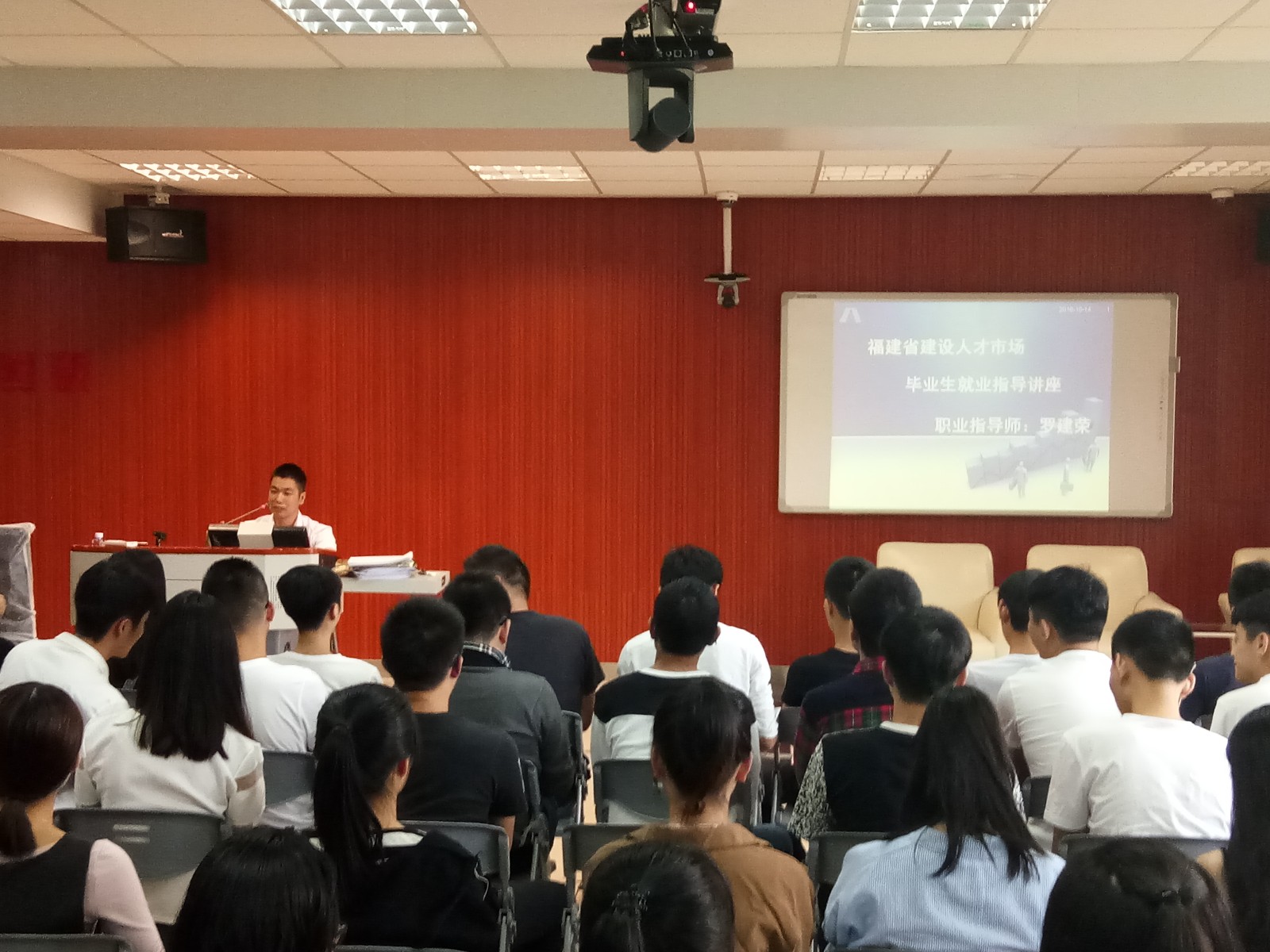我系认真开展2017届毕业生就业宣讲工作。2016年10月14日上午,我系邀请福建省建设人才市场罗建荣导师为全体2017届毕业做毕业就业指导导师讲座。