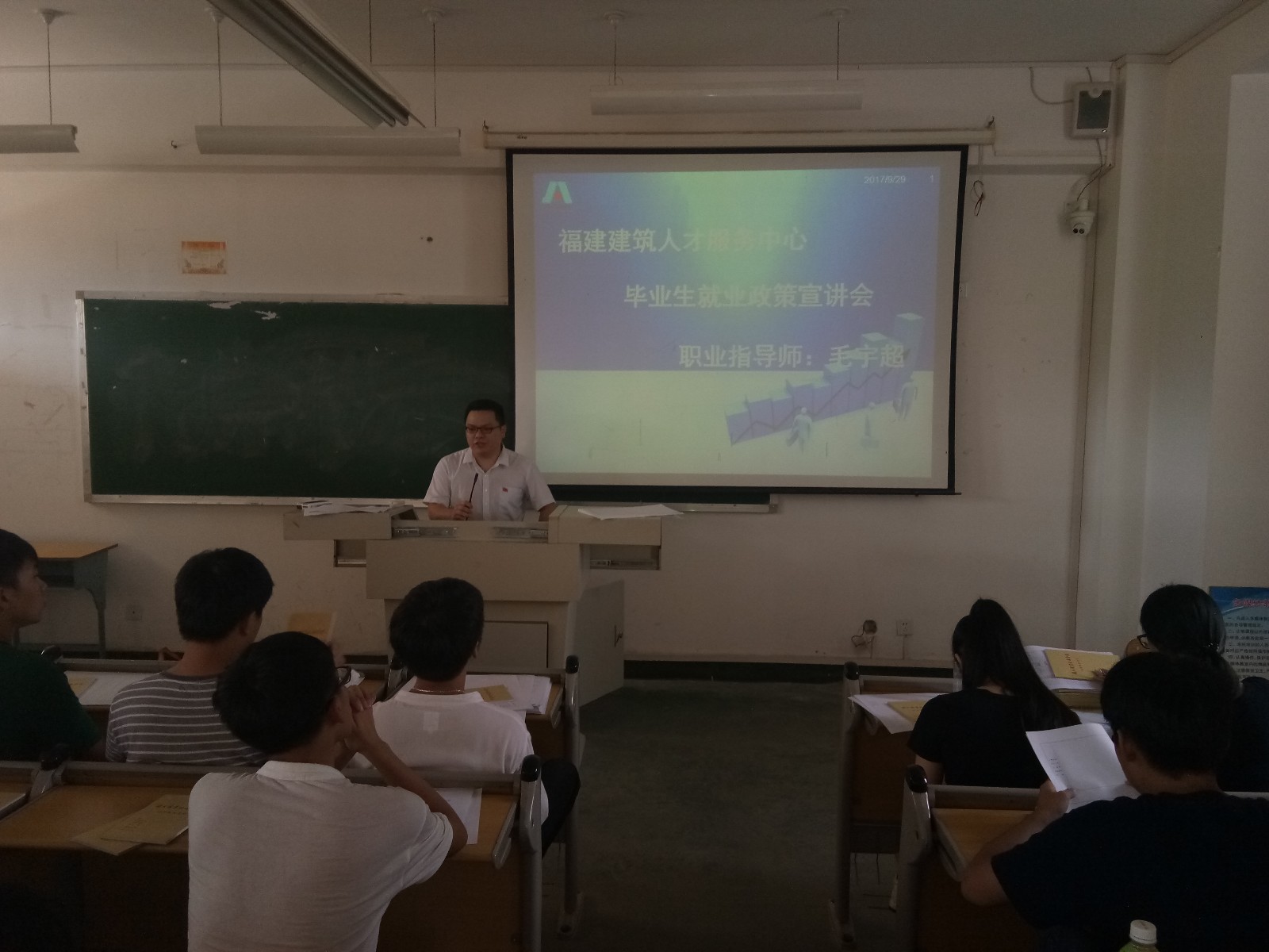 我系认真开展2018届毕业生就业宣讲活动。2017年9月29日上午,我系邀请福建省建筑人才服务中心毛宇超导师为全体毕业生做了一场毕业生就业政策专题讲座❌。