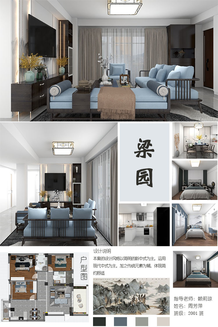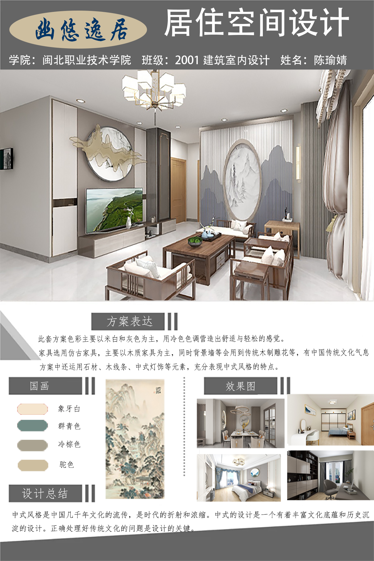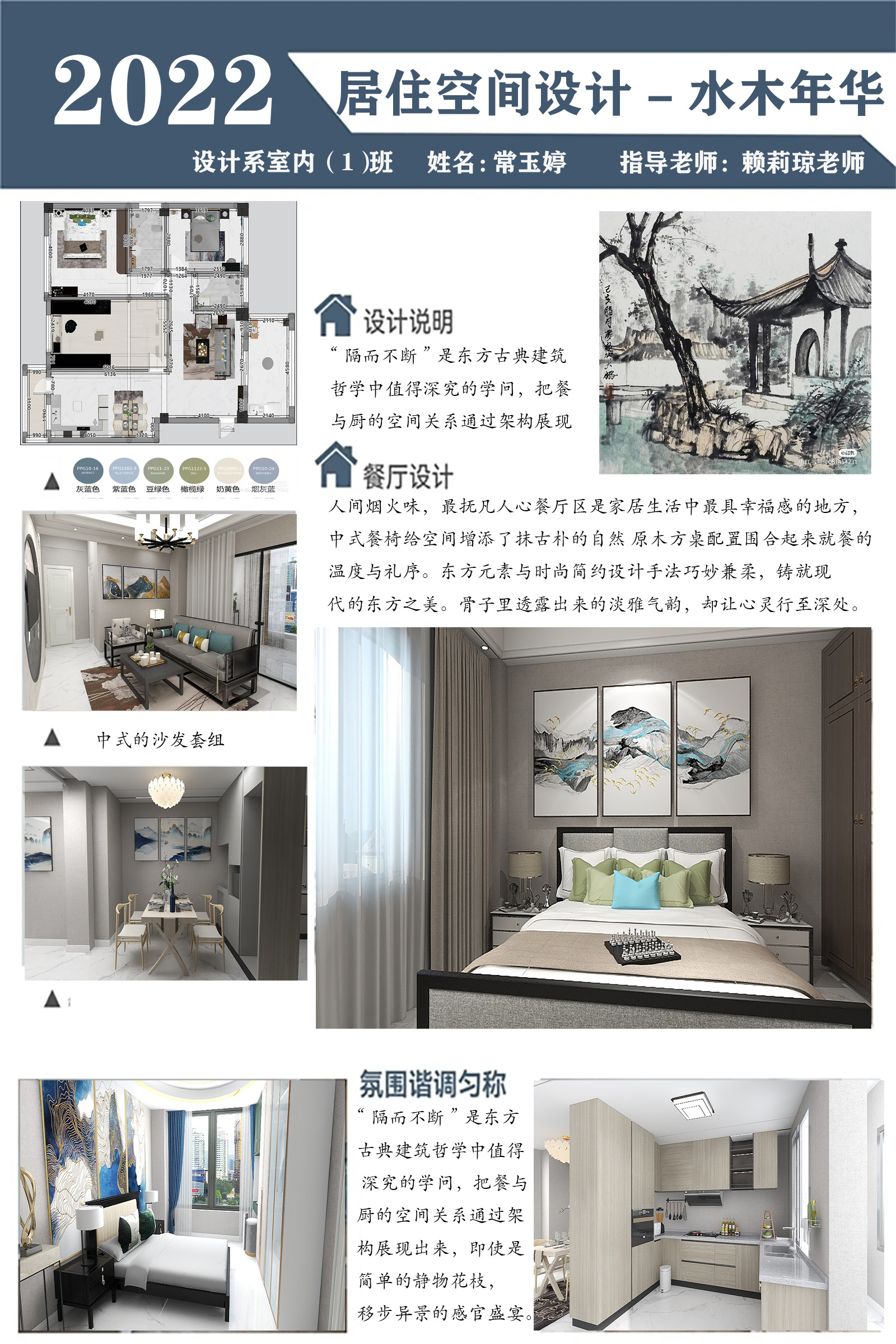文化是民族发展的力量源泉。文化兴国运兴,文化强民族强🫴🏻。《居住空间设计》课程项目设计,在“喜迎二十大”的新时代背景下,引导学生将中国画色彩提取再设计,打造新中式风格清雅含蓄、端庄典雅的室内设计作品🤦🏿♀️👩👩👧,在设计和创新中培养学生高度的民族自豪感和坚定的文化自信🕡。