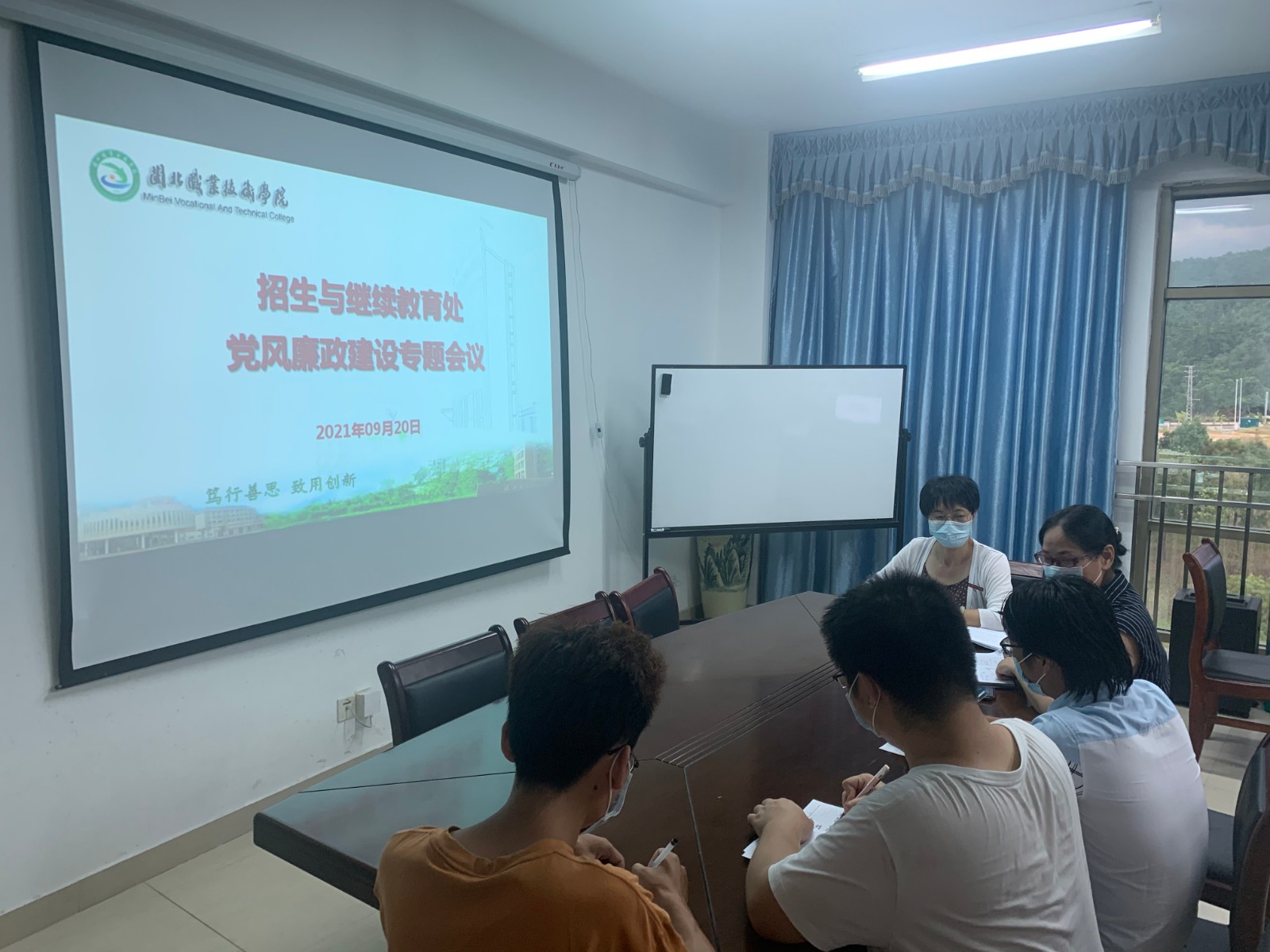 中秋🤒、国庆两节将至,为确保文明廉洁过节🚺,9月20日下午💆🏿,招生与继续教育处在行政楼401室召开党风廉政建设专题工作会议。詹永珍处长主持会议,学院挂点招生与继续教育处的纪委委员🧕、教育系张完英主任到会指导工作🐃。