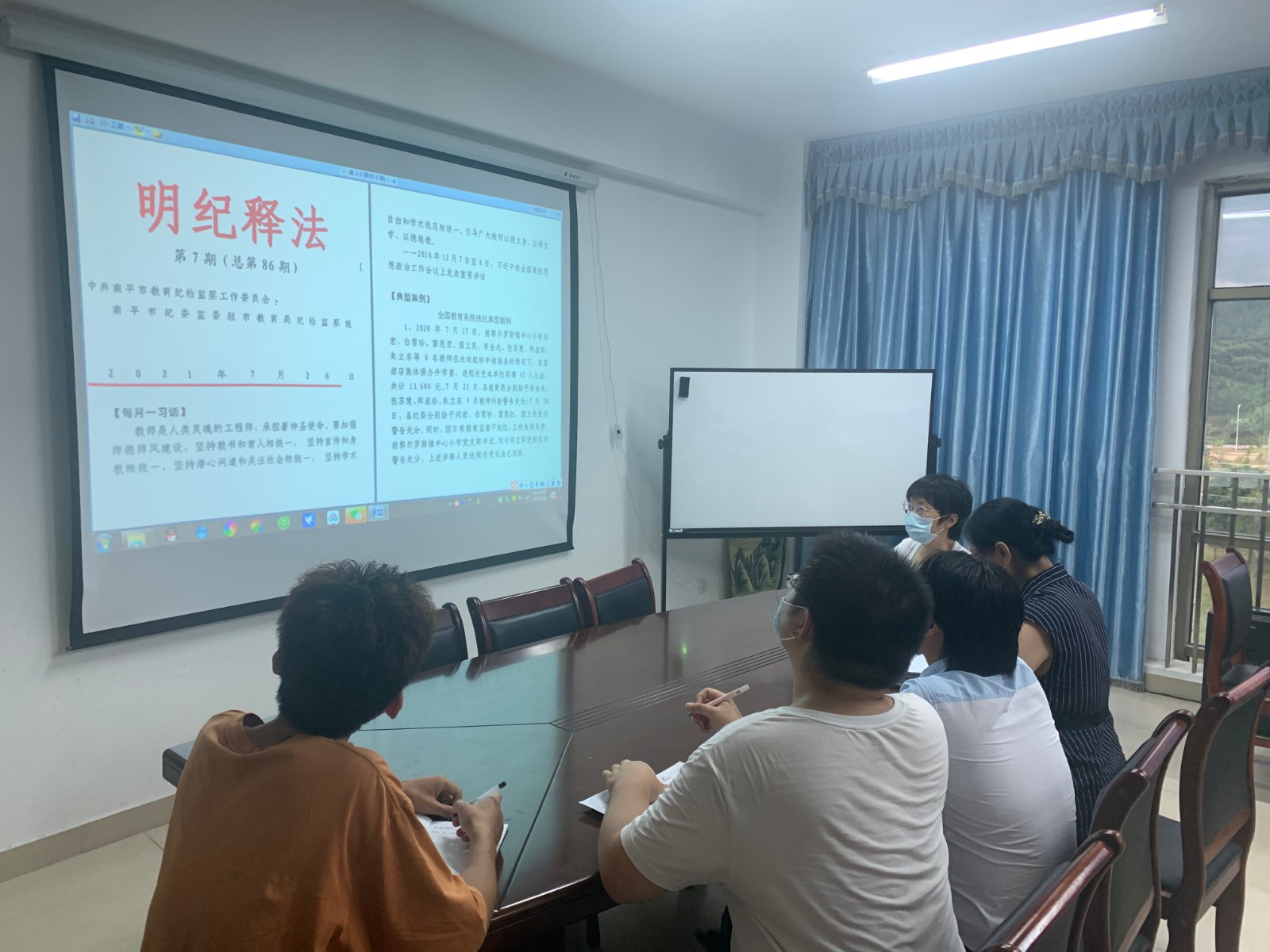 詹永珍处长组织处室工作人员学习中央纪委国家监委公开通报十起违反中央八项规定精神典型问题及南平市纪委教育工委明纪释法 第7期(总第86期)中教育👨🦰、体育系统违纪违法典型案例🧖🏻,要求处室工作人员要从身边典型案例中吸取教训、引以为戒,绷紧纪律之弦,守住行为底线,不要触犯纪律的红线。