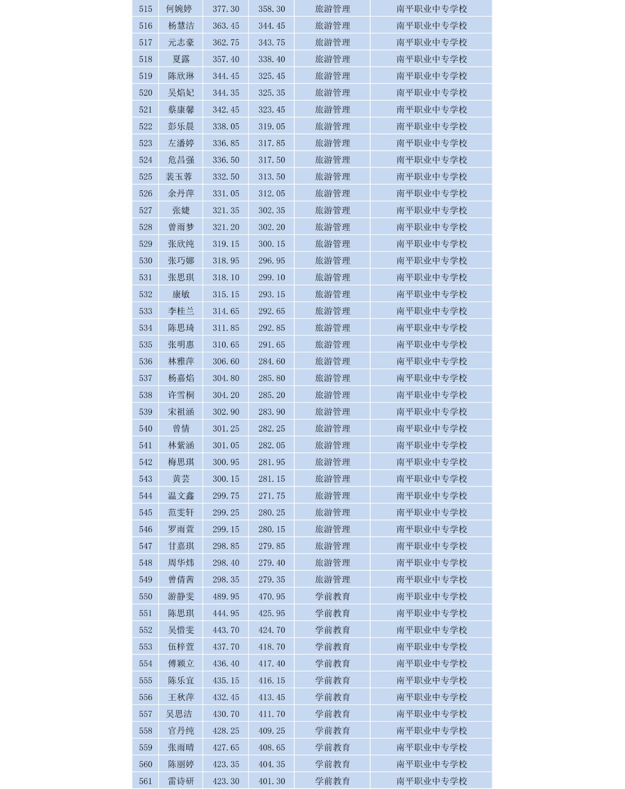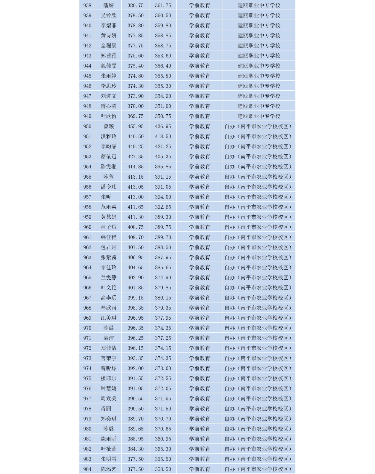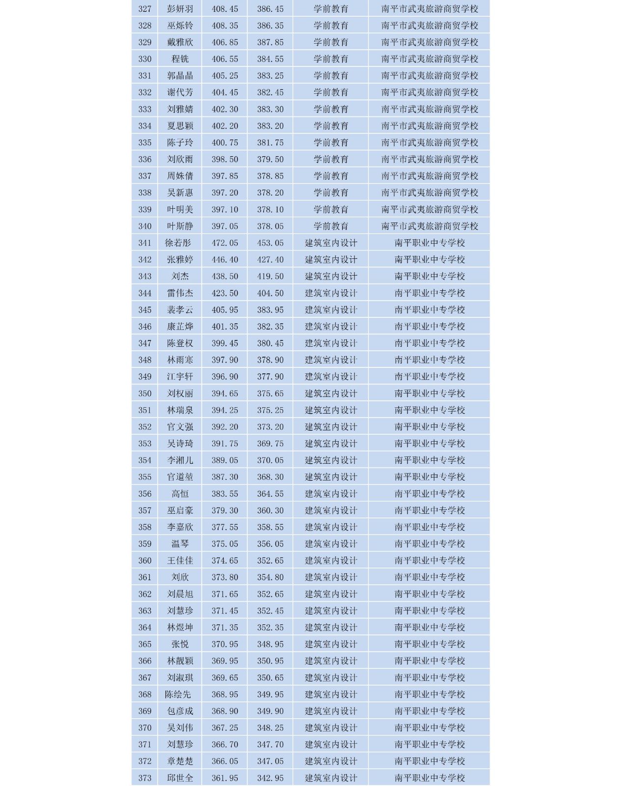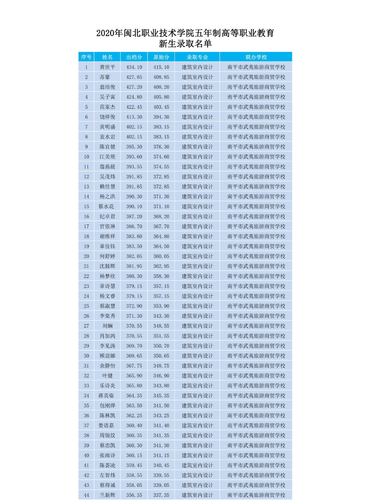 2020年彩神五年制高等职业教育新生录取名单(南平地区)