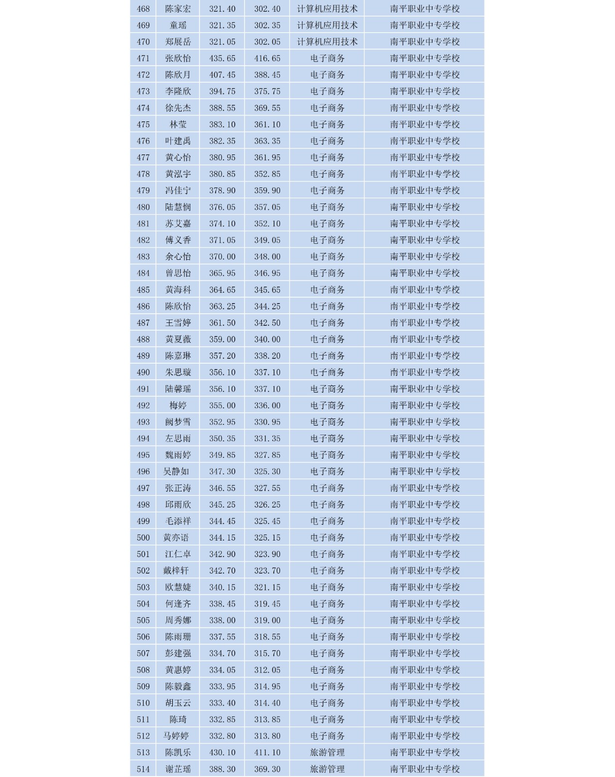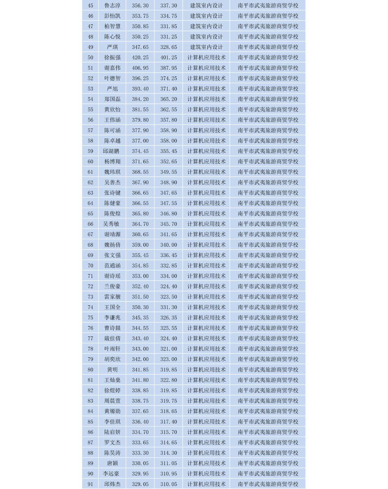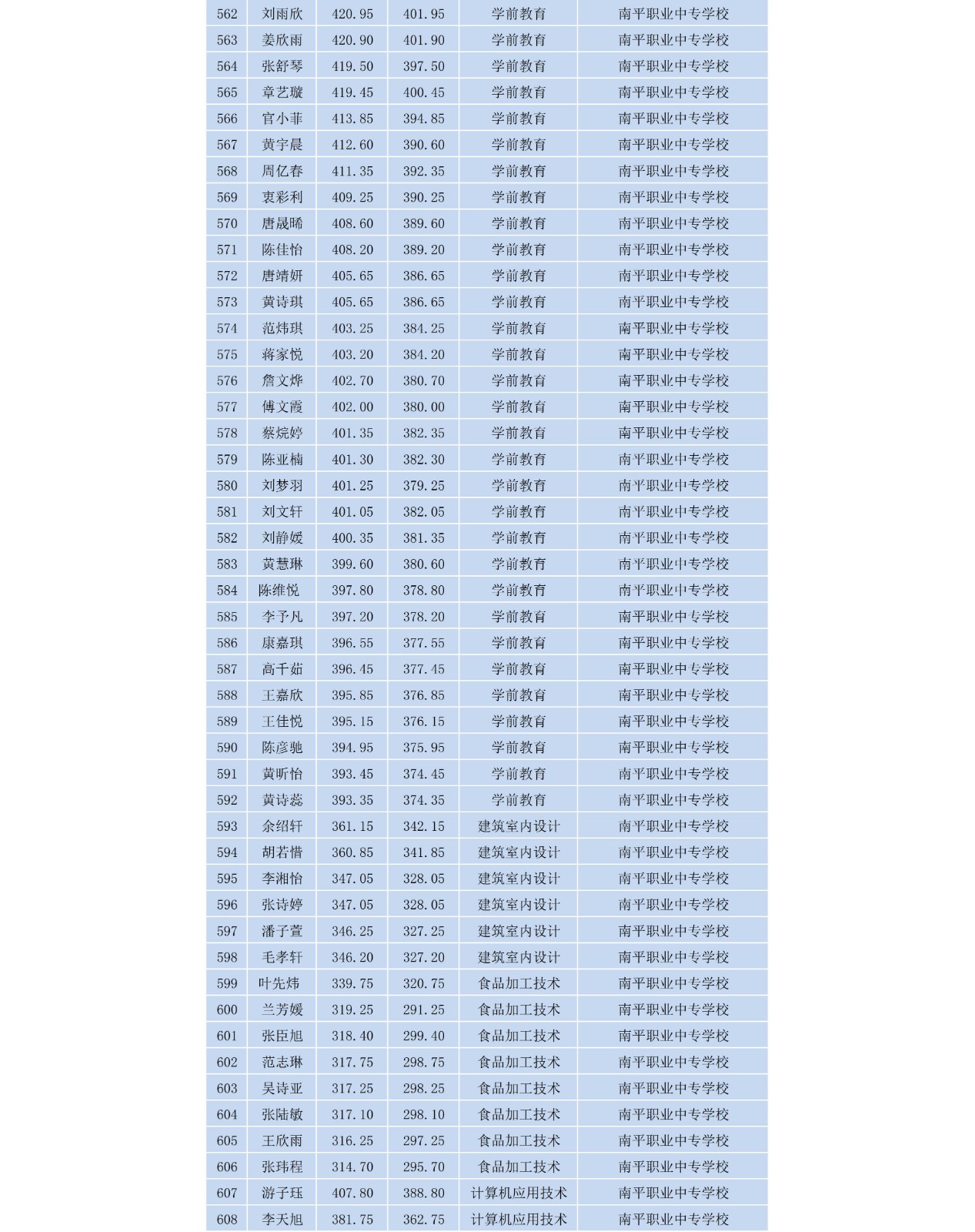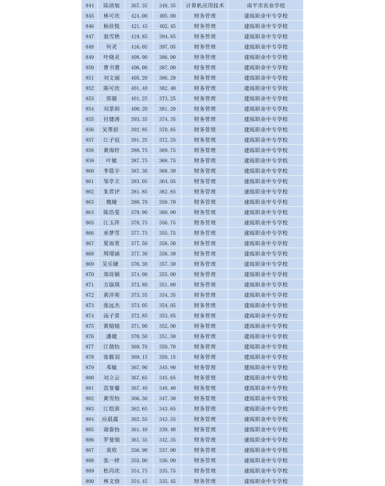 2020年彩神五年制高等职业教育新生录取名单(南平地区)