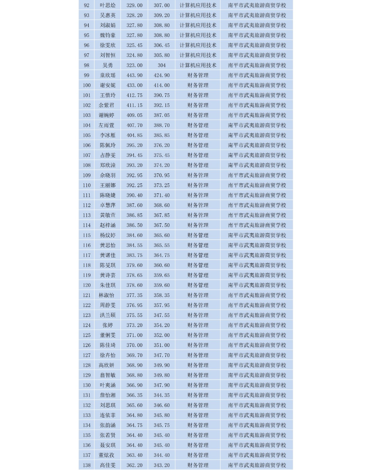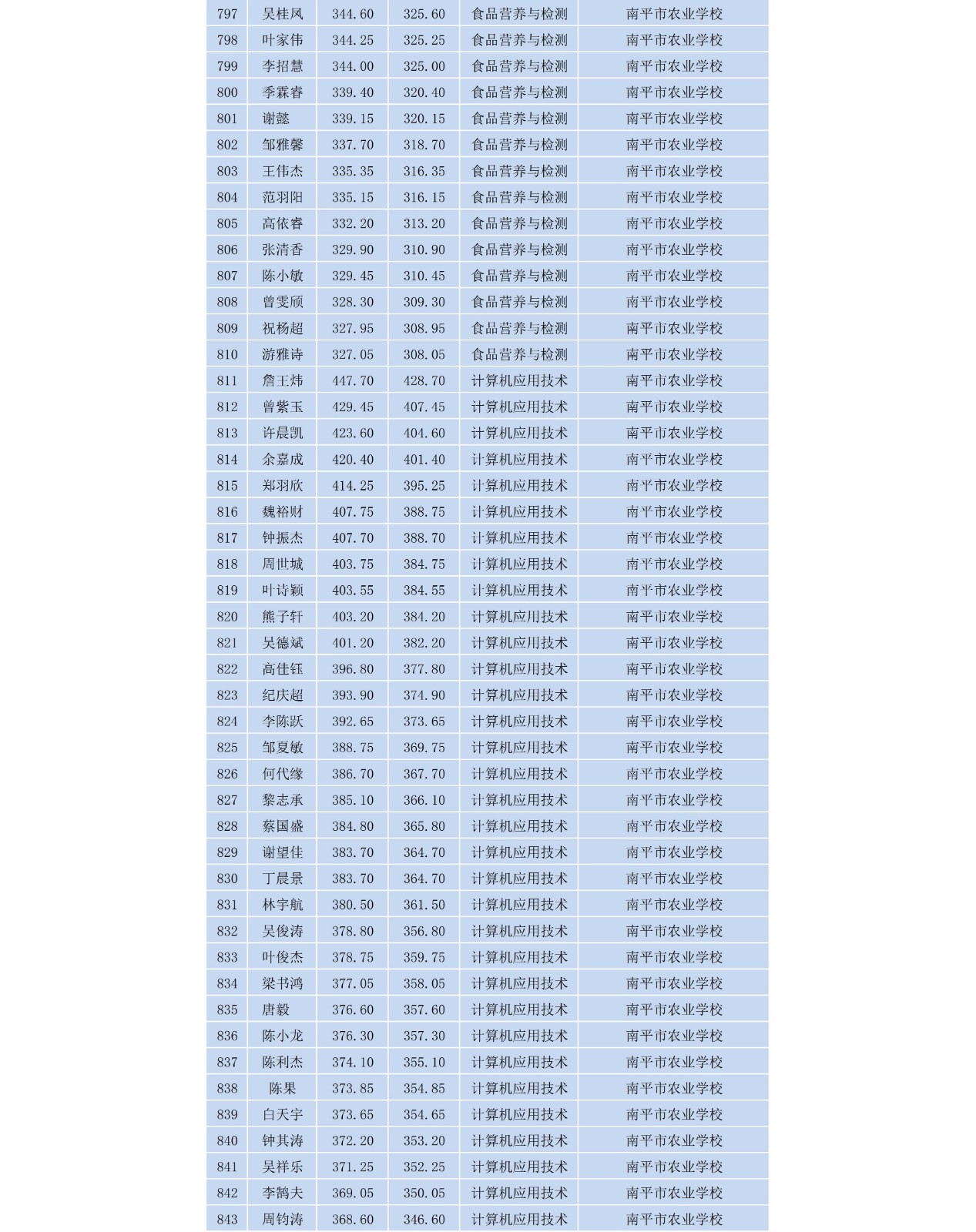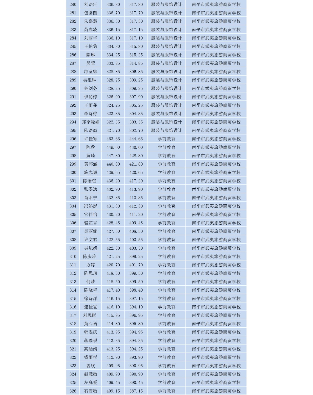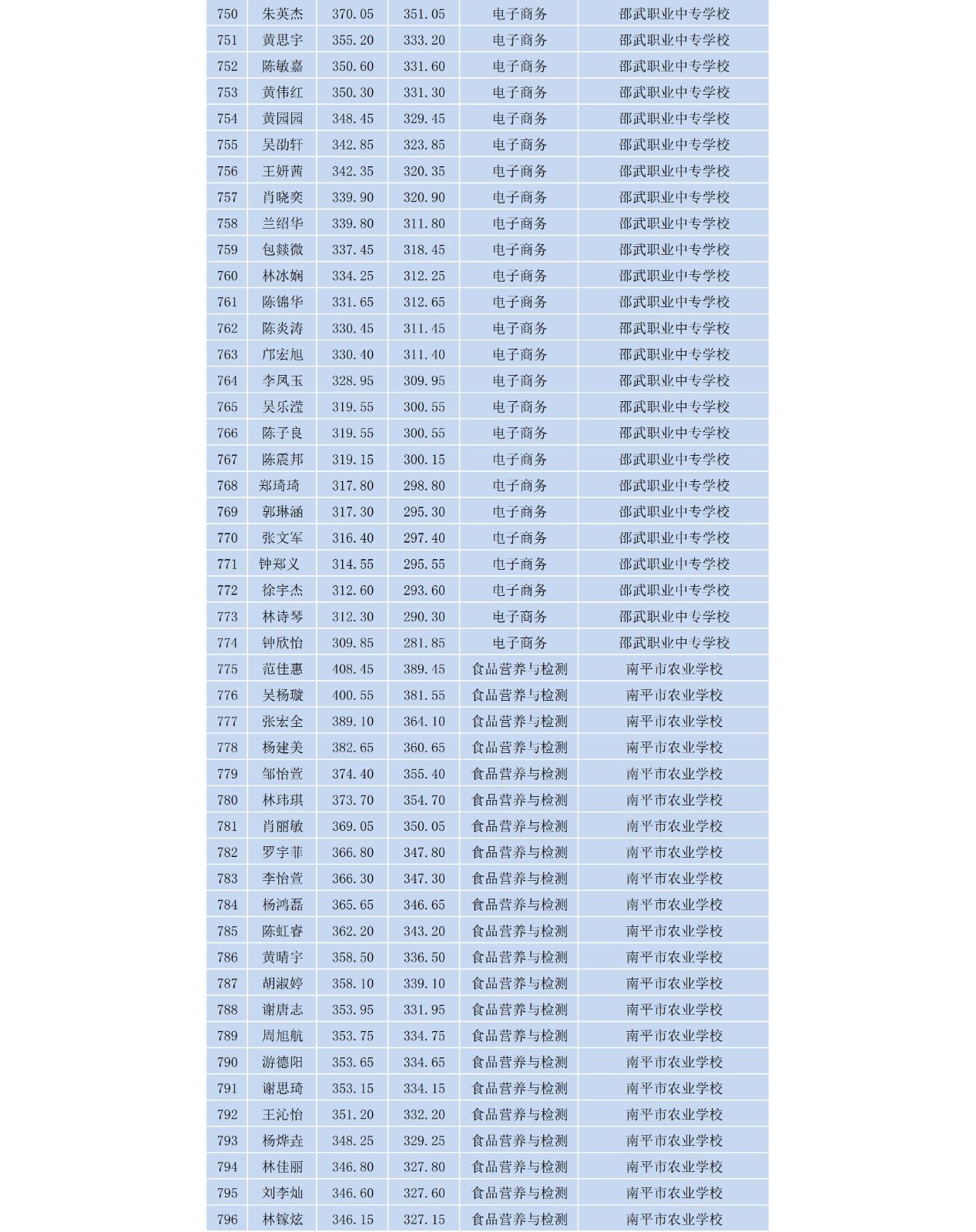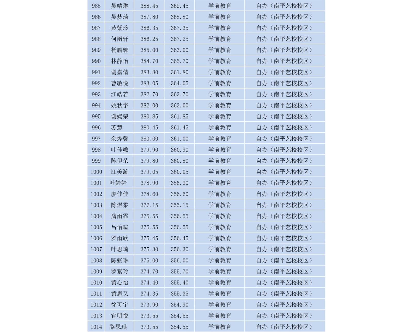 2020年彩神五年制高等职业教育新生录取名单(南平地区)