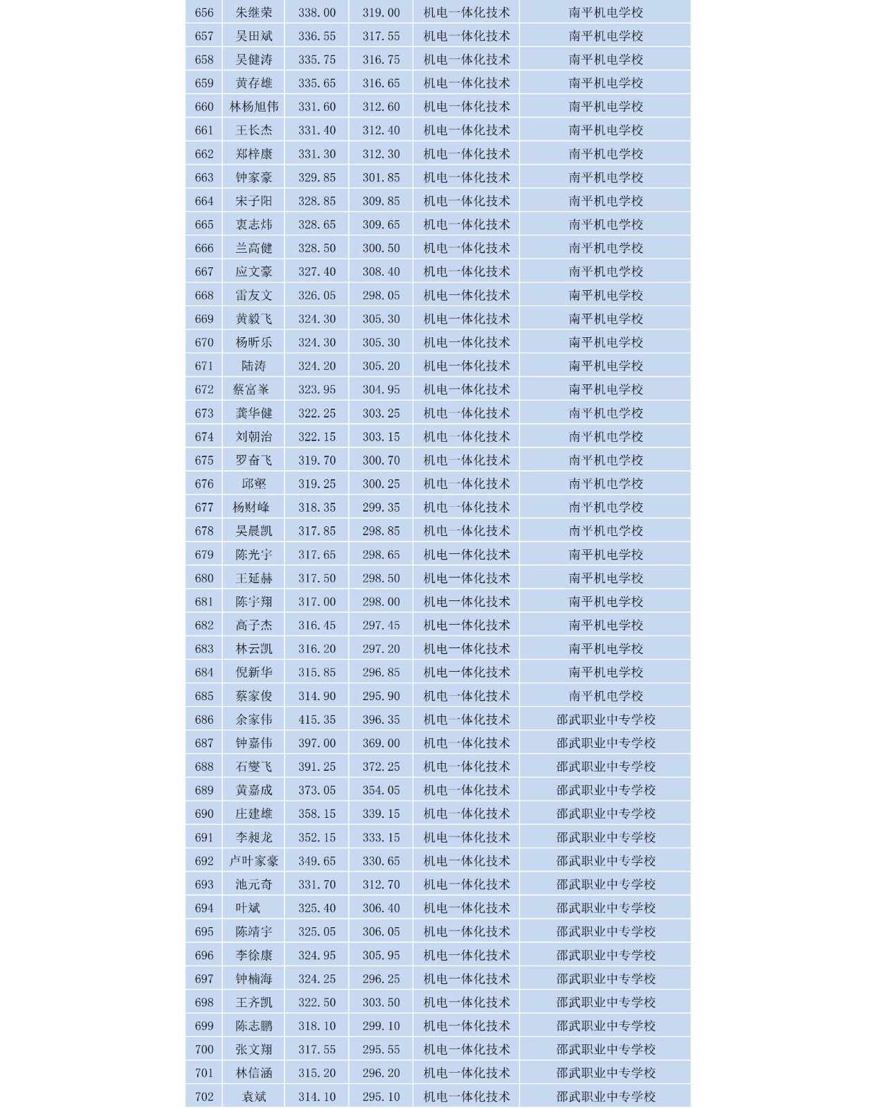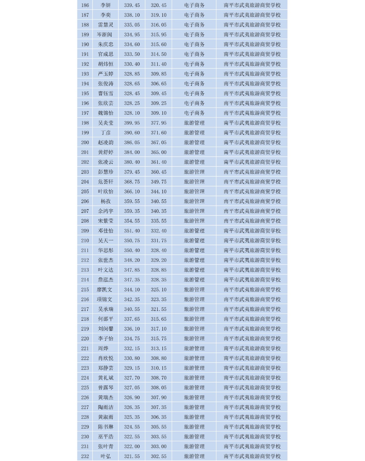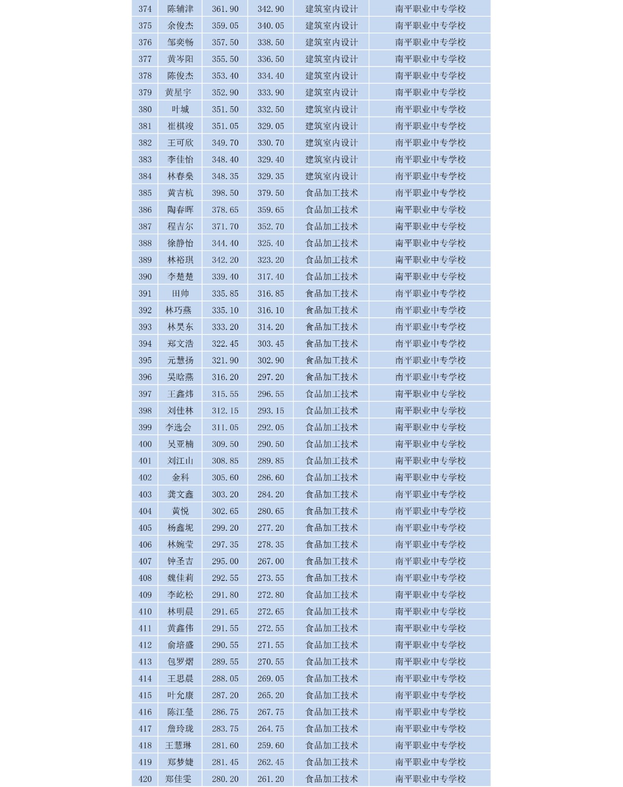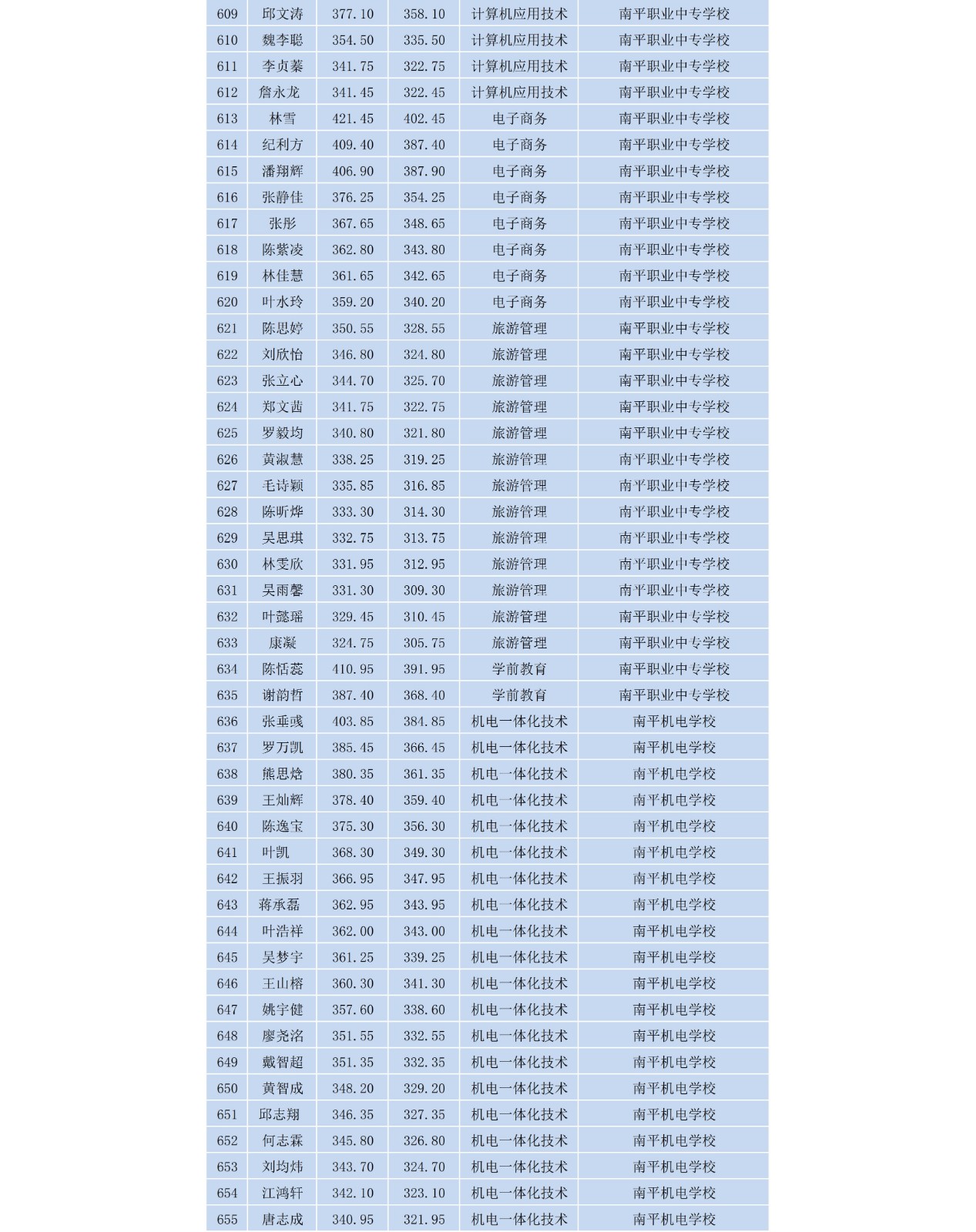 2020年彩神五年制高等职业教育新生录取名单(南平地区)