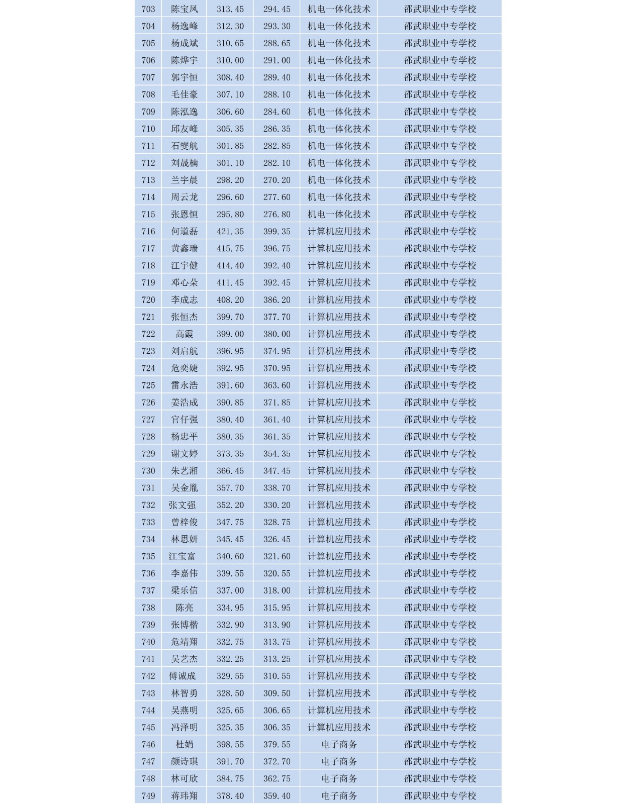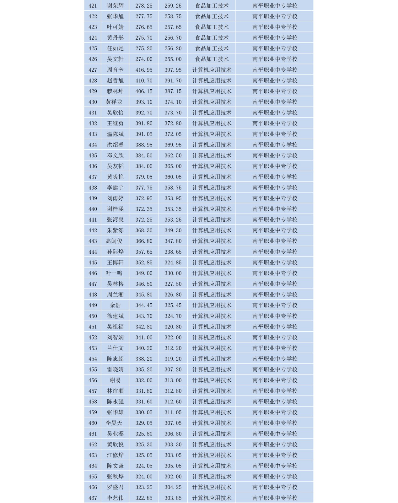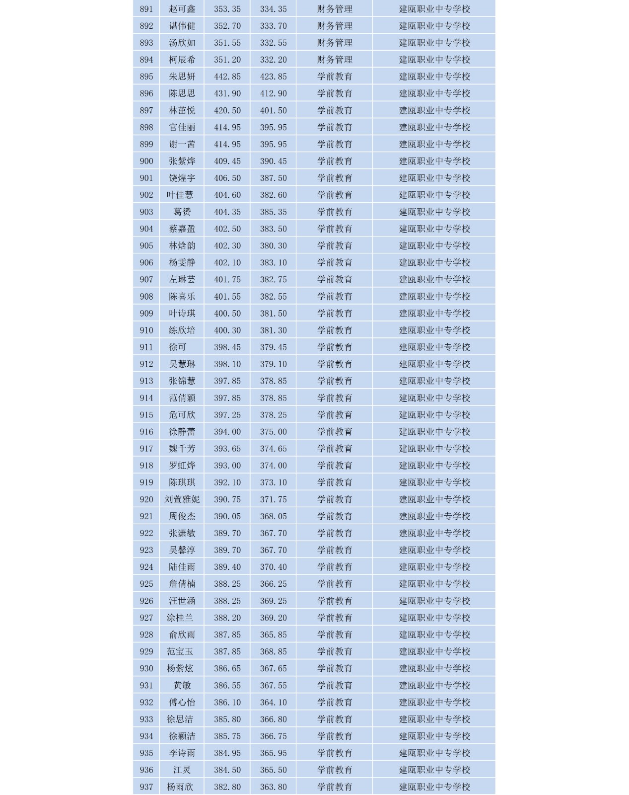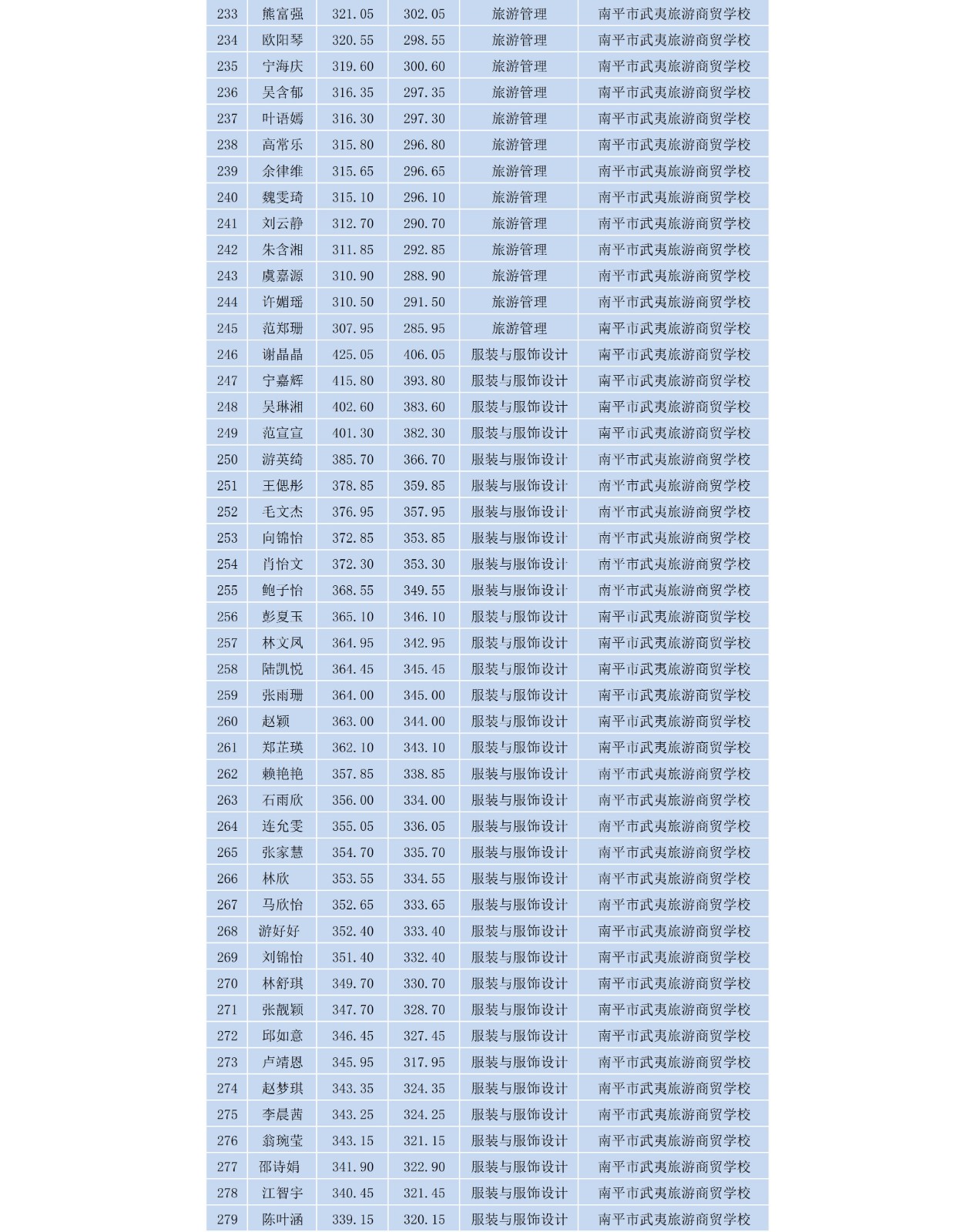 2020年彩神五年制高等职业教育新生录取名单(南平地区)
